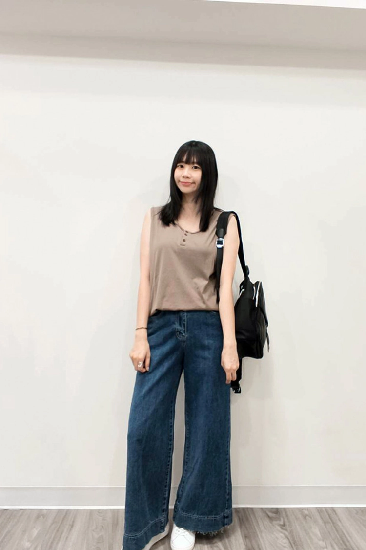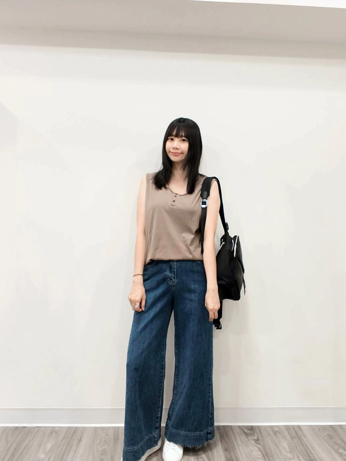 尺寸(cm):肩線42 胸圍100 袖圍46 衣長67材質:棉混紡產地:韓國洗滌說明:放洗衣袋機洗MODEL 莎妹:159cm/上身S號/下身S號MODEL 小莎:163cm/上身M號/下身M號#胖貓家料子摸起來非常柔軟親膚