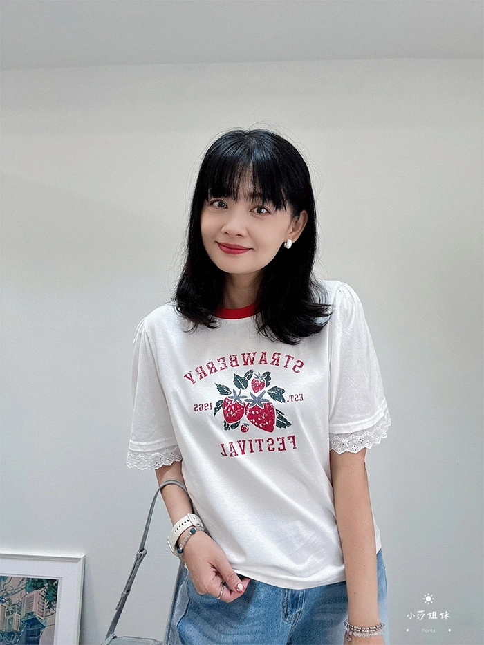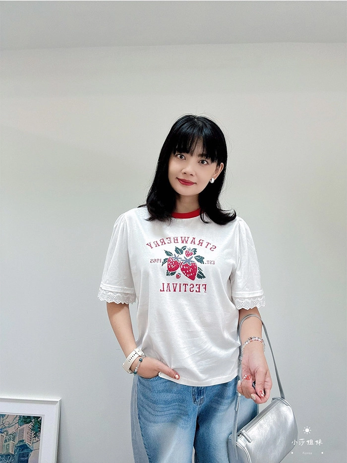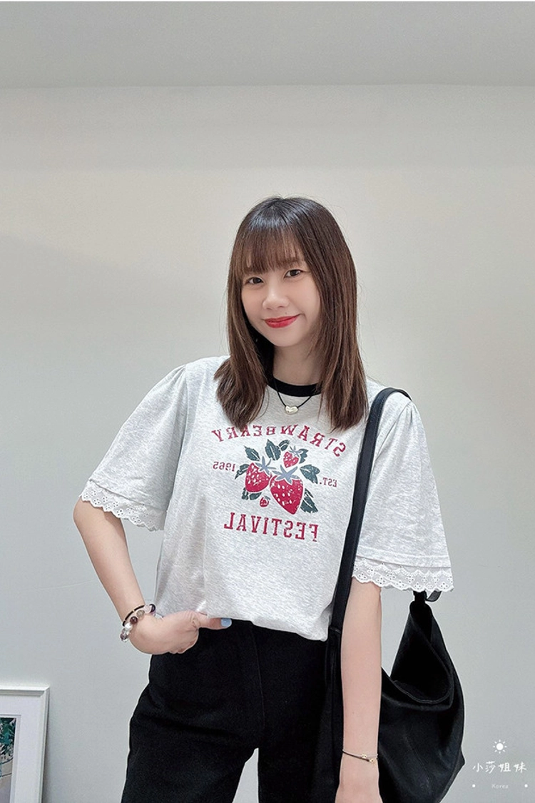 直播影片在這邊👇 https://www.facebook.com/oshalekorea/videos/803552472739614此款商品出場時間在 1:32:00尺寸(cm):肩寬40 胸圍104 袖長29 袖圍46 衣長58材質:布蕾絲+棉產地:韓國洗滌說明:放洗衣袋機洗MODEL 莎妹:159cm/上身S號/下身S號MODEL 小莎:163cm/上身M號/下身M號