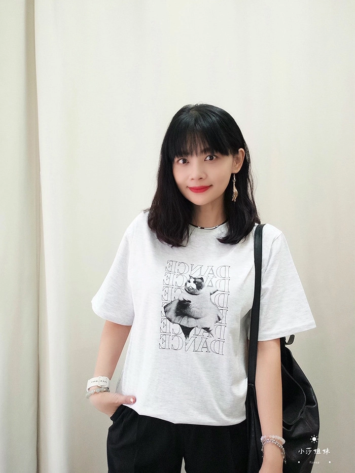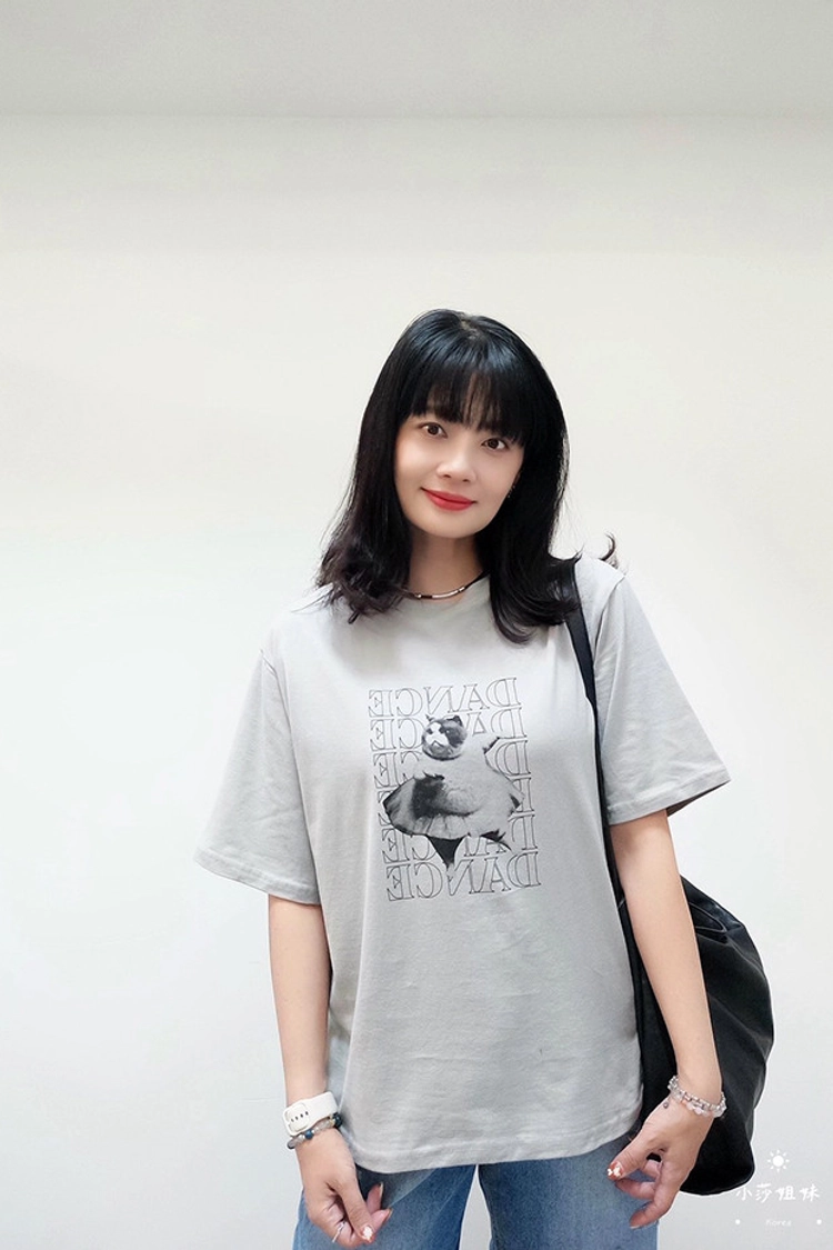直播影片在這邊👇 https://www.facebook.com/oshalekorea/videos/803552472739614此款商品出場時間在 1:42:30 尺寸(cm):肩寬46 胸圍104 袖長24 袖圍42 衣長63材質:棉混人造絲產地:韓國洗滌說明:放洗衣袋機洗MODEL 莎妹:159cm/上身S號/下身S號MODEL 小莎:163cm/上身M號/下身M號