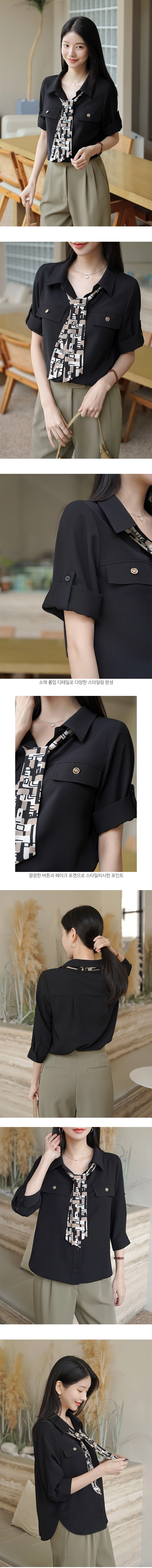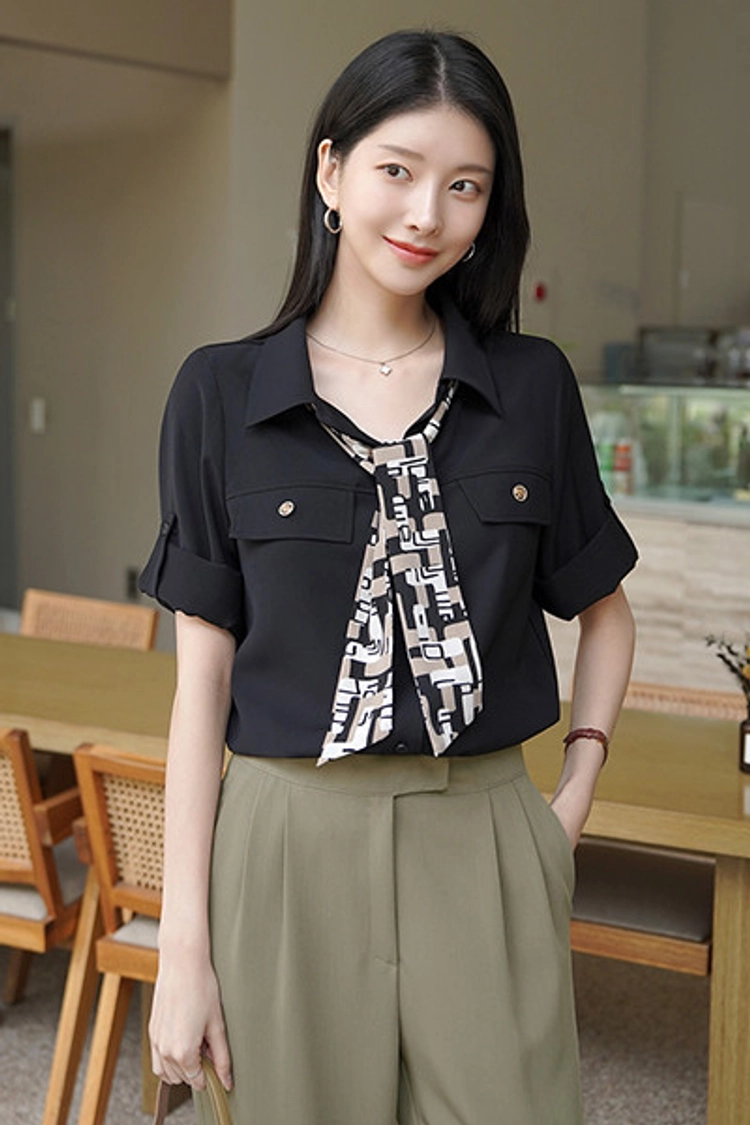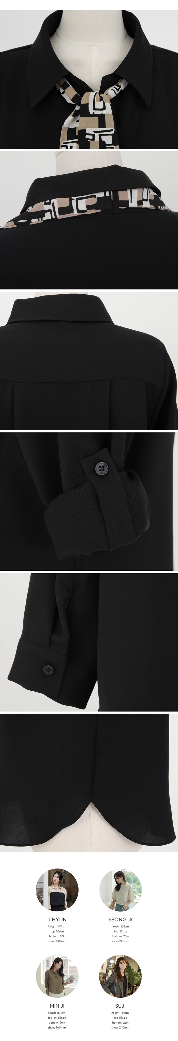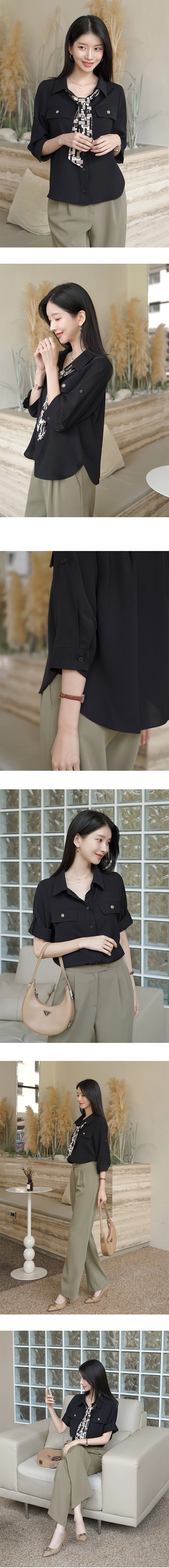 2509C01 七分袖顯瘦襯衫+領巾二件組