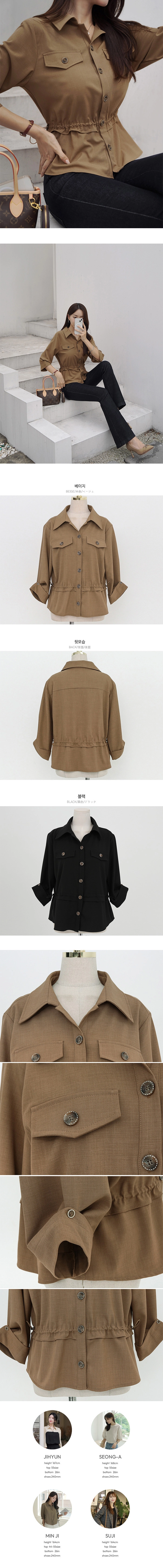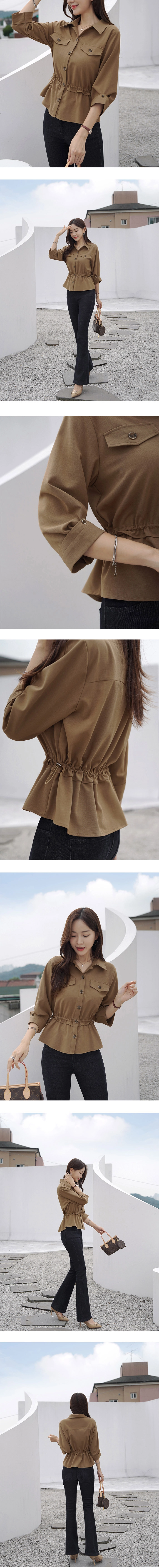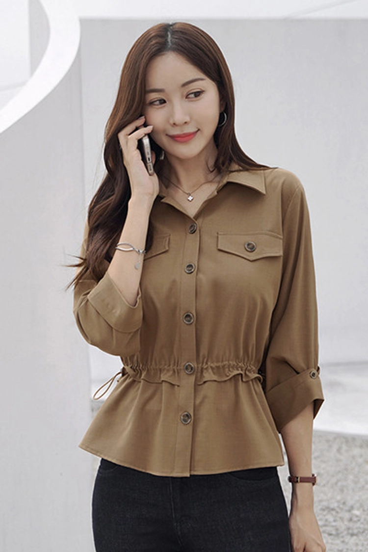 2509C03 OL推薦.抽繩腰身七分袖顯瘦襯衫