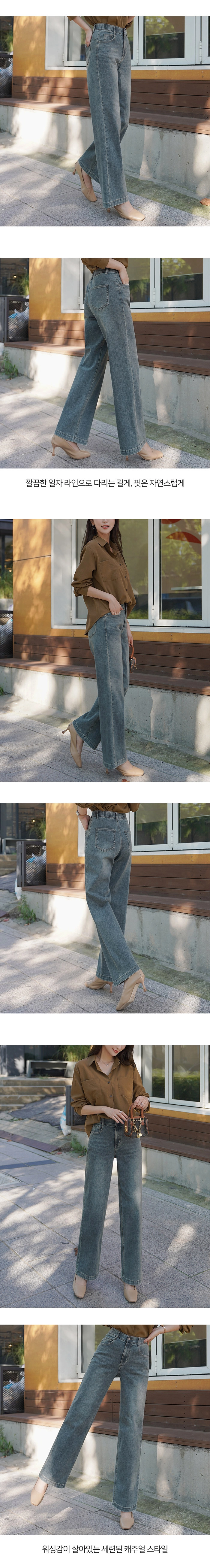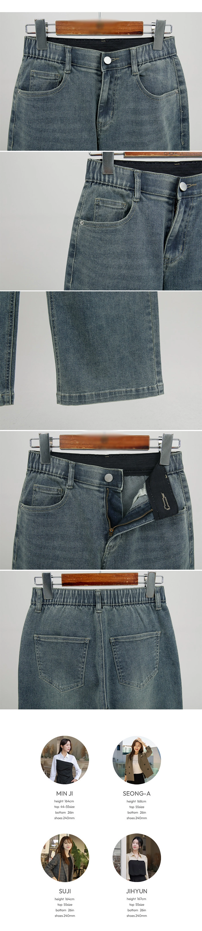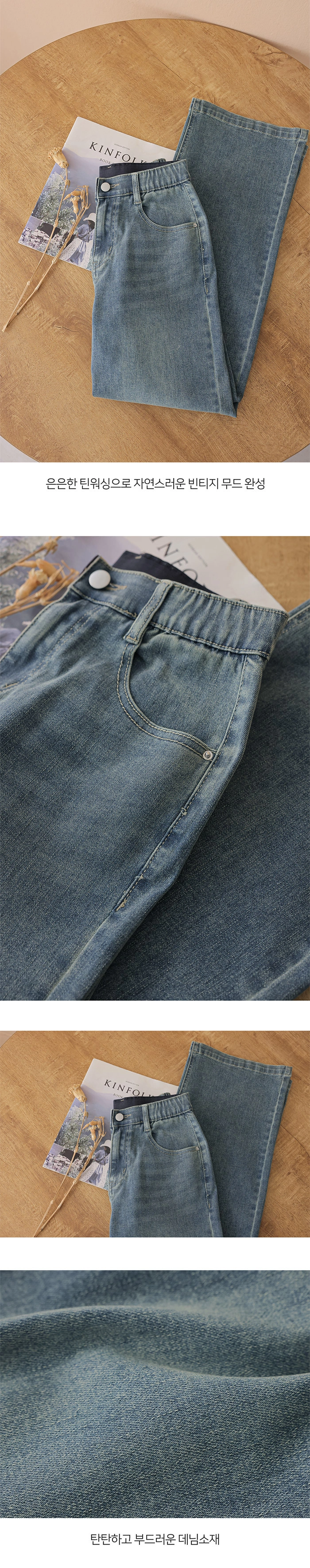 2509C07 彈性腰圍洗舊刷色直筒牛仔褲(S/M/L)