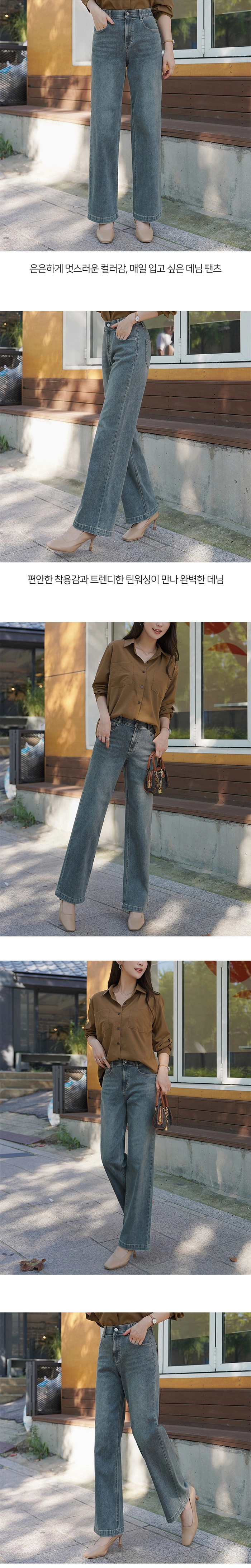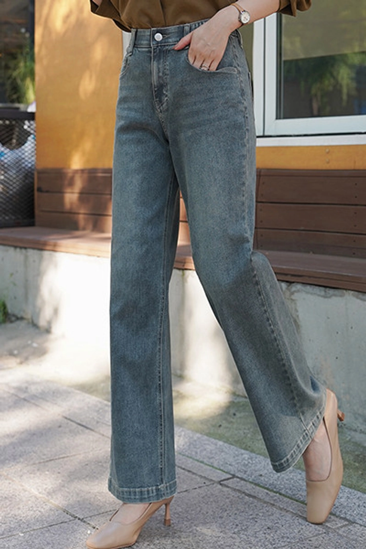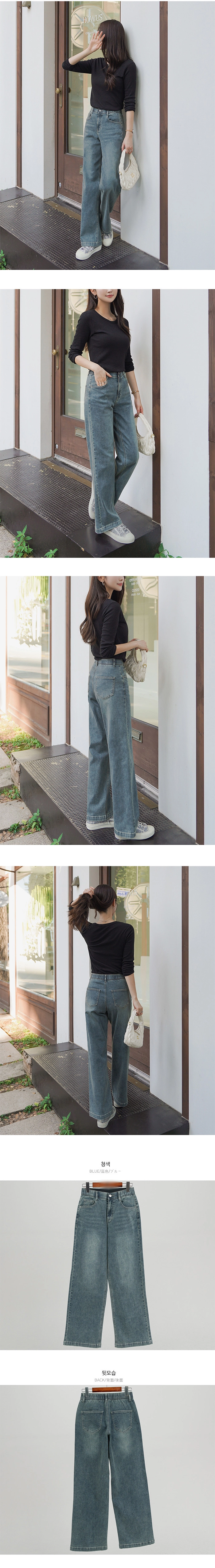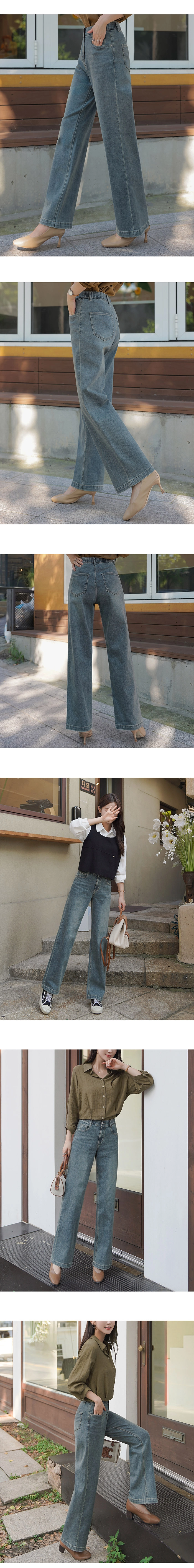 2509C07 彈性腰圍洗舊刷色直筒牛仔褲(S/M/L)