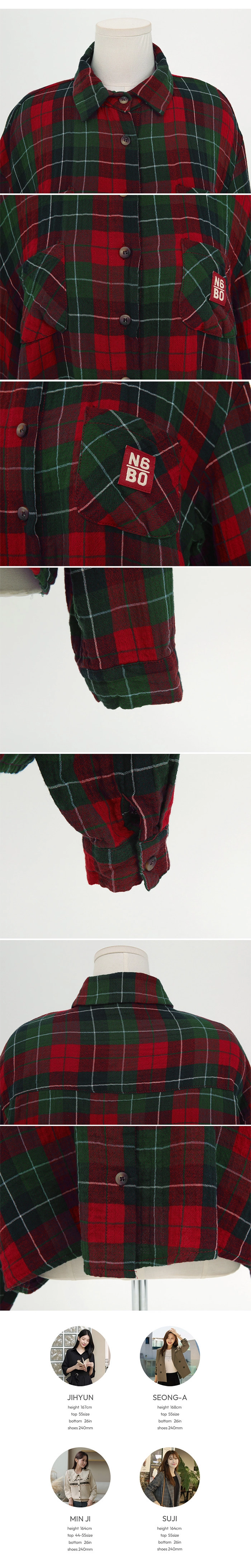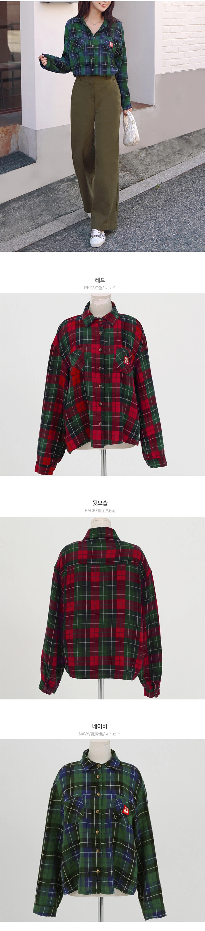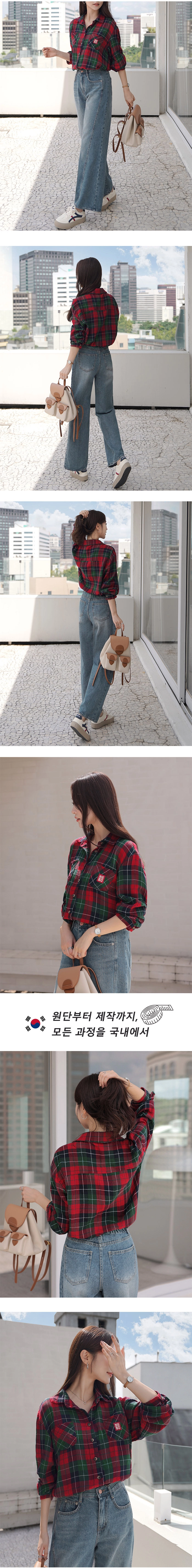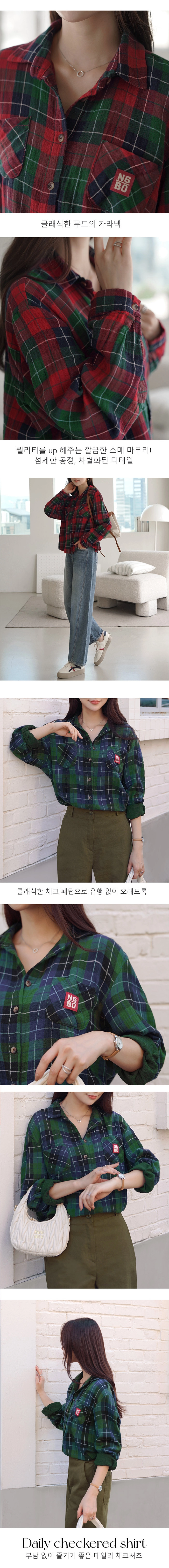 2509C11 休閒風補丁裝飾格紋寬鬆造型襯衫