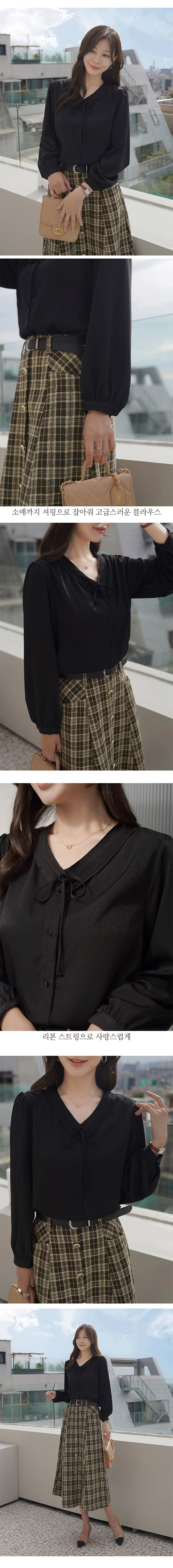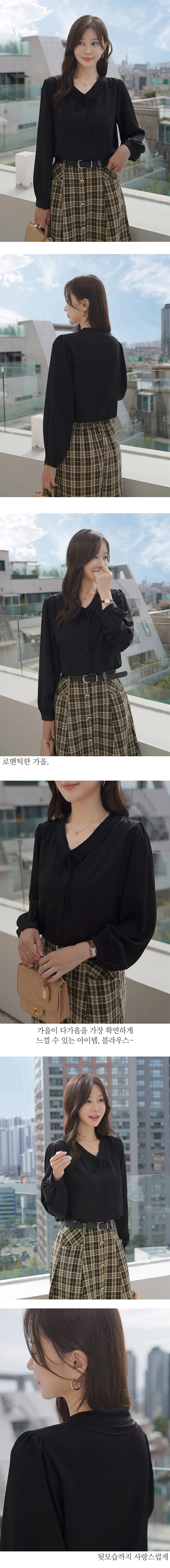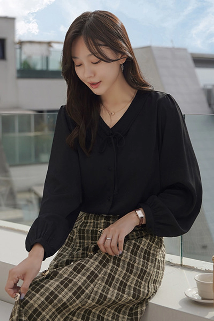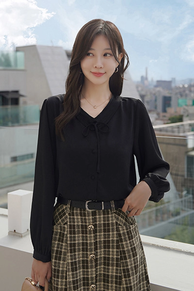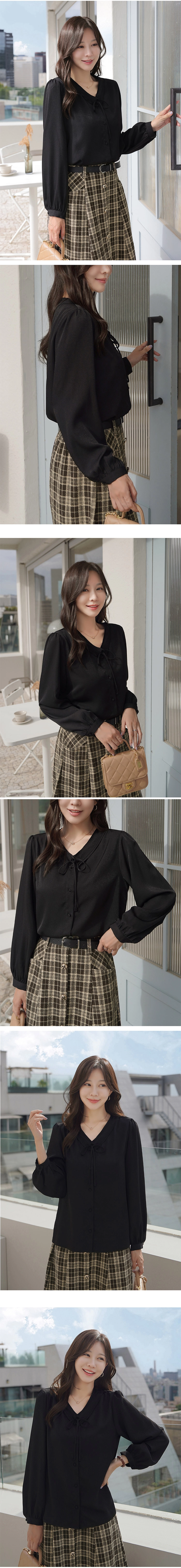2509C15 OL推薦.皺褶蝴蝶結V領造型襯衫