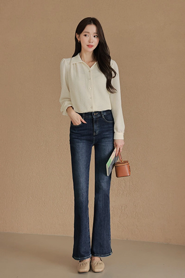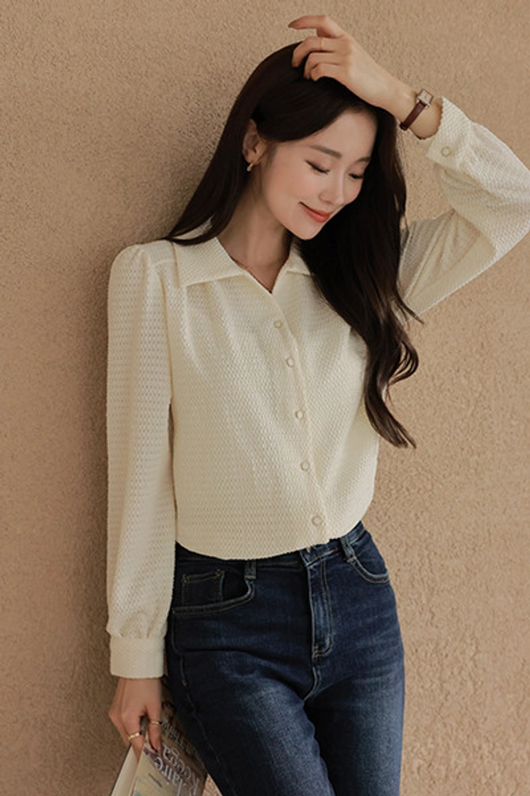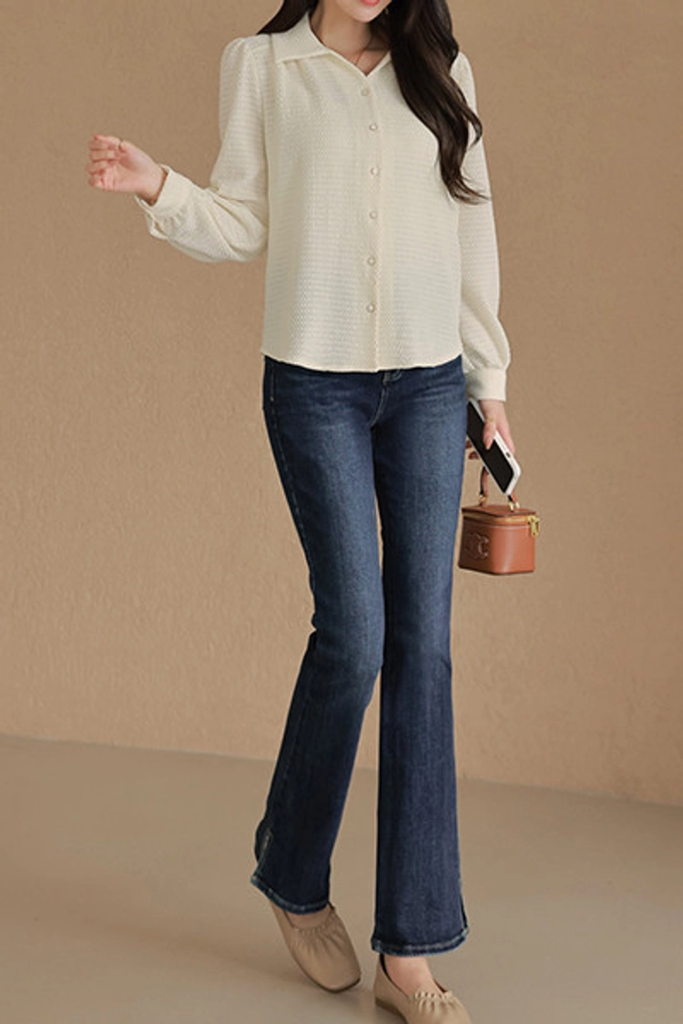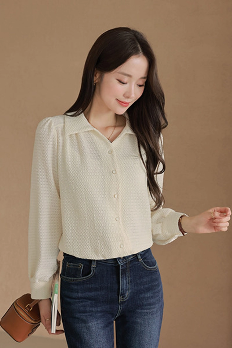 2509C16 氣質系貝殼釦透氣布料顯瘦襯衫