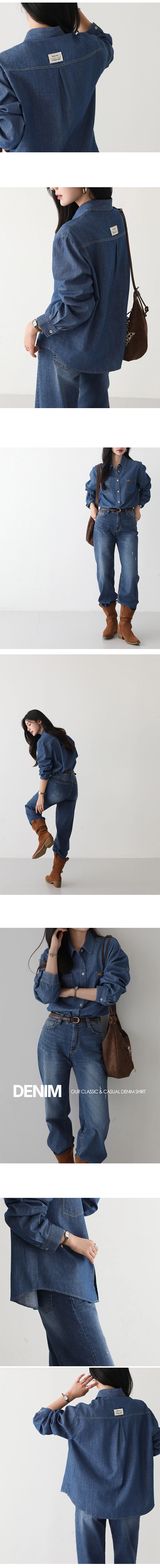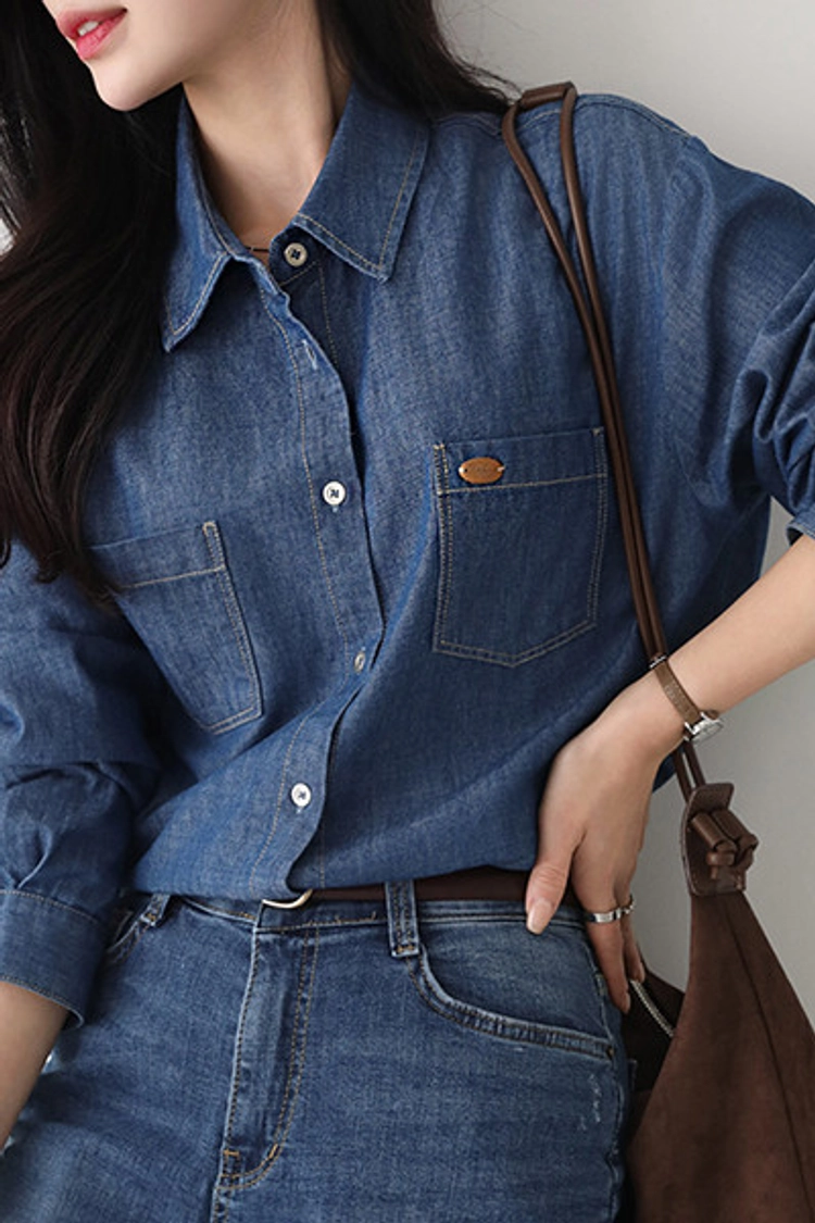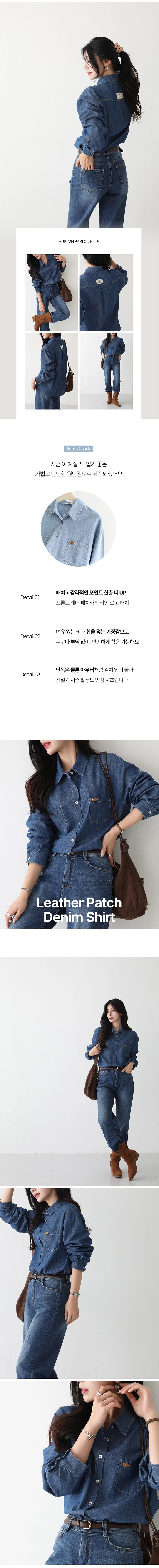 2509P13 皮革&小標籤車線造型牛仔襯衫