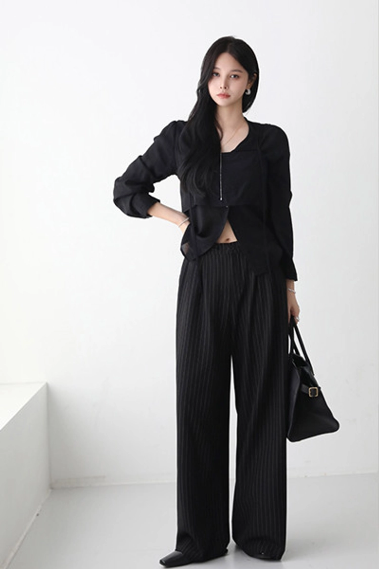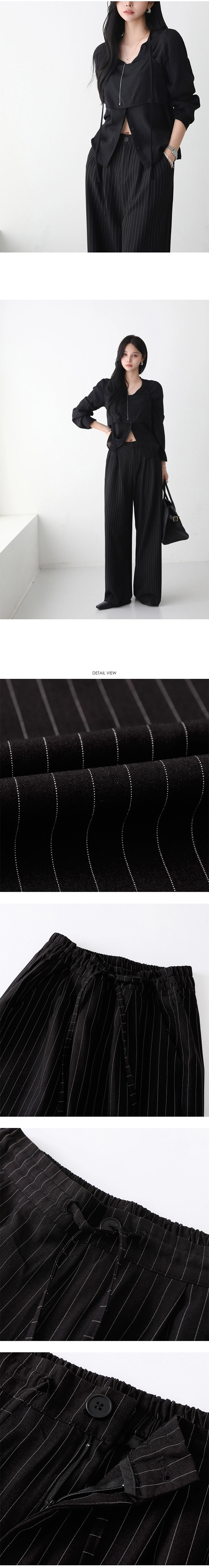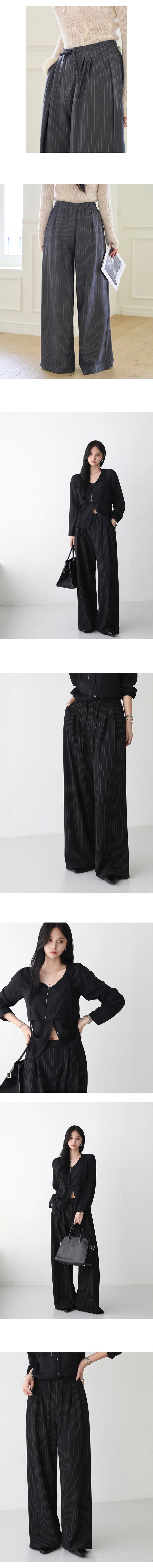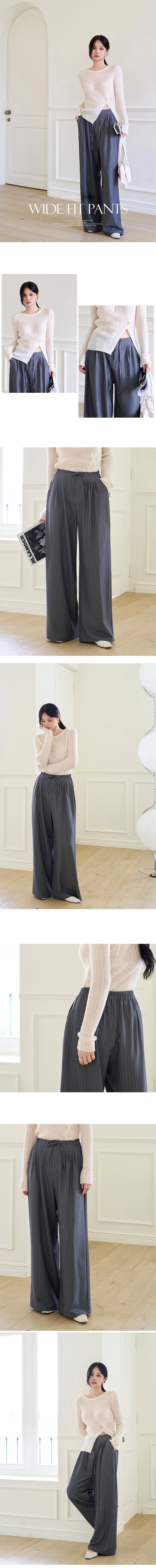 2509P15 彈性抽繩綁帶直紋顯瘦休閒褲