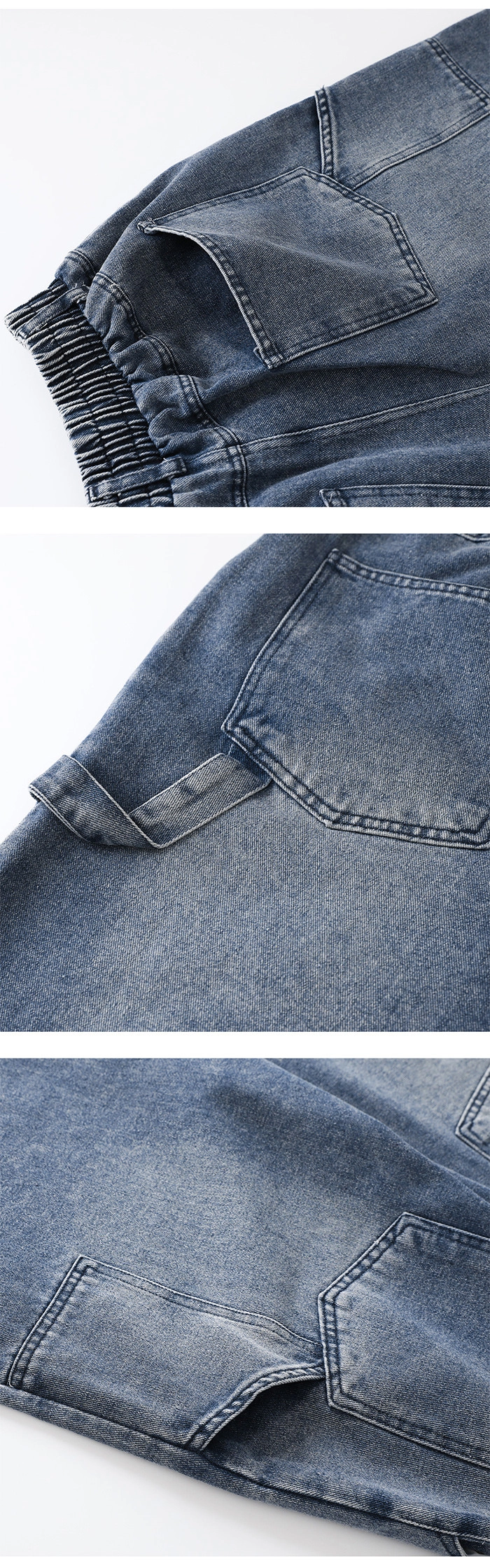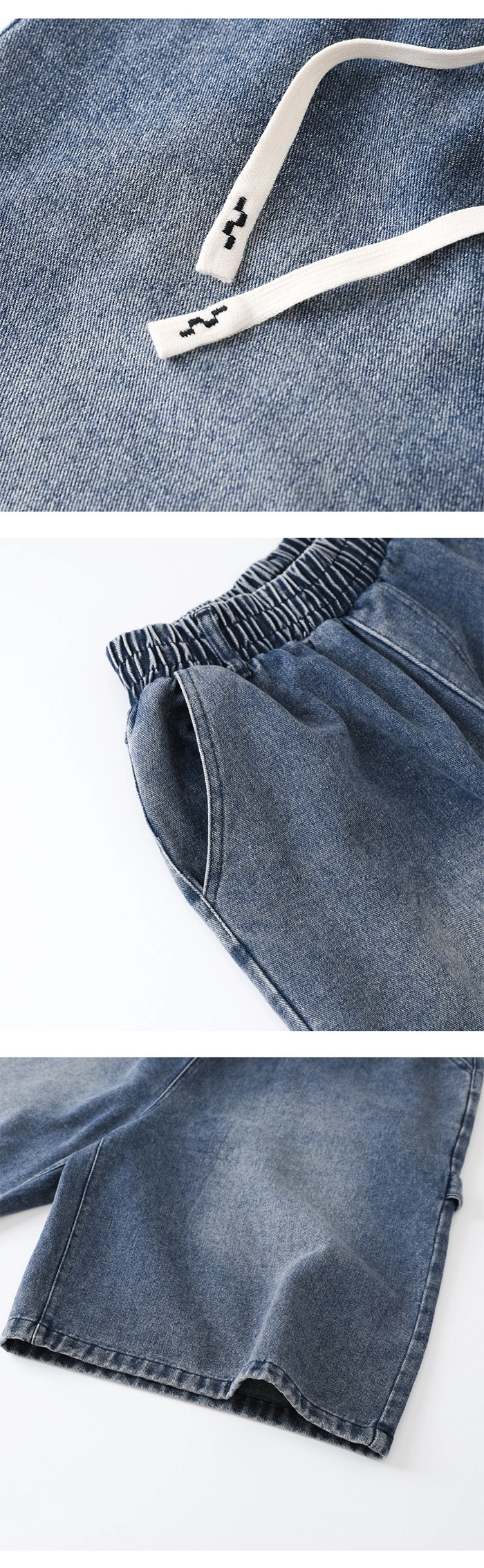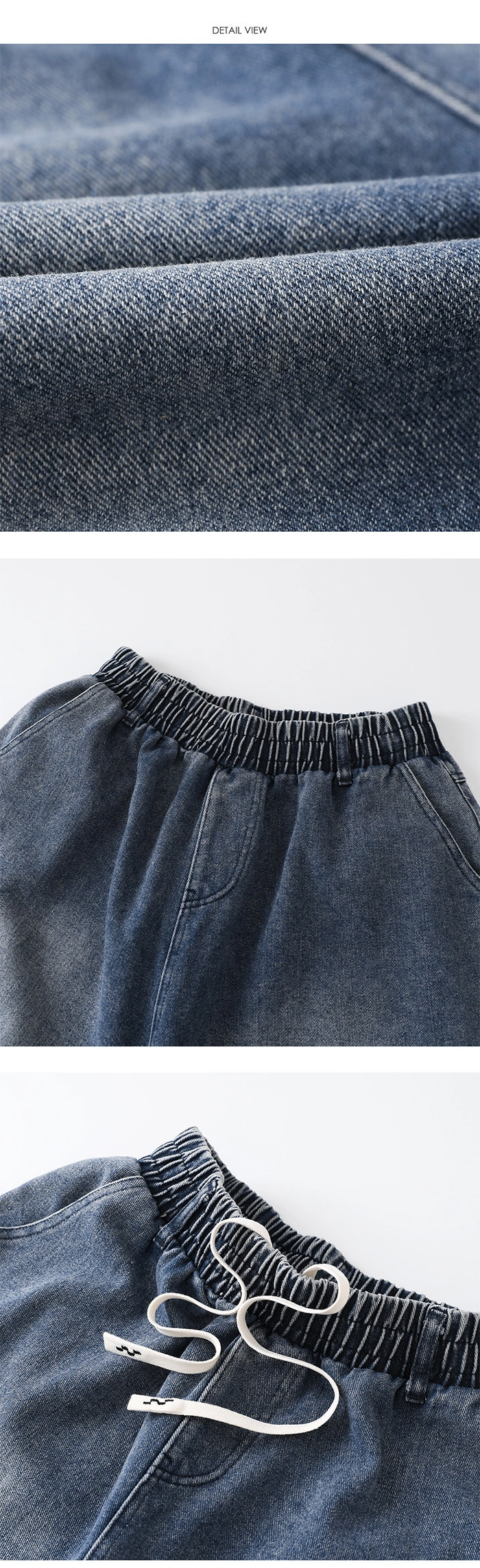 2509P16 鬆緊抽繩腰牛仔七分寬褲