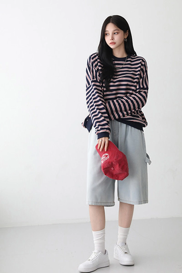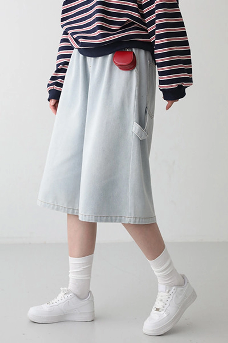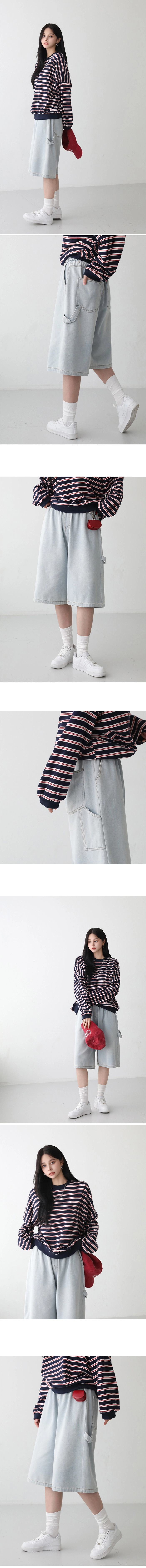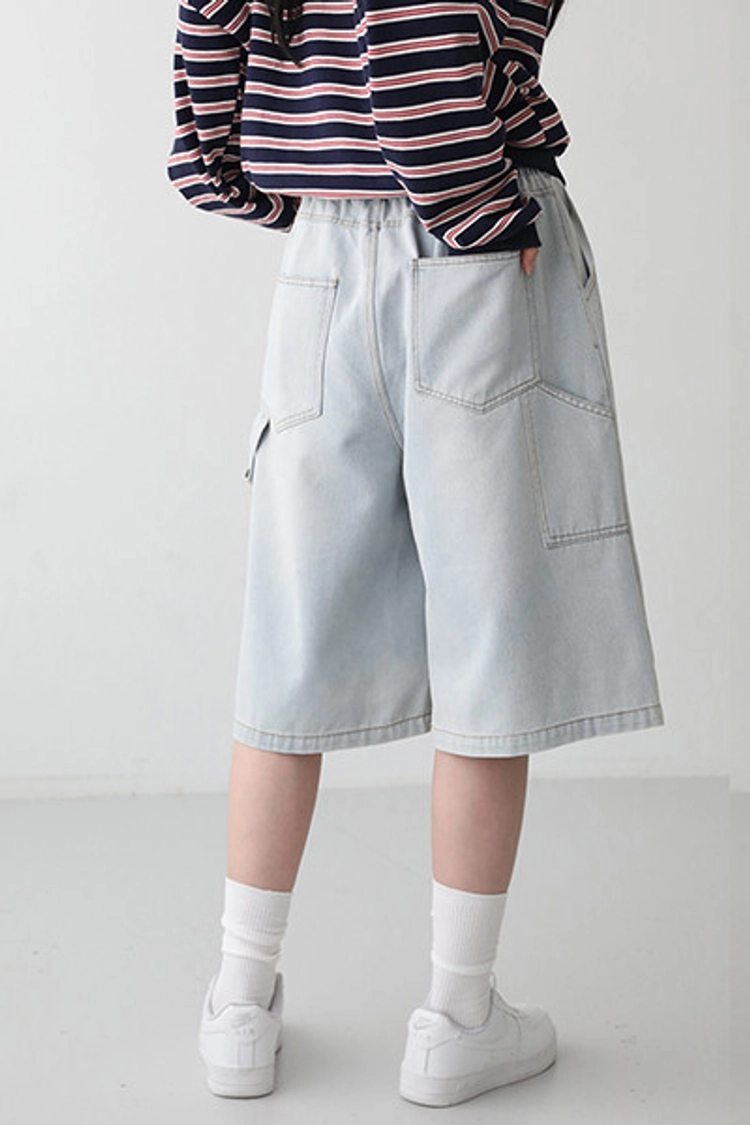 2509P16 鬆緊抽繩腰牛仔七分寬褲