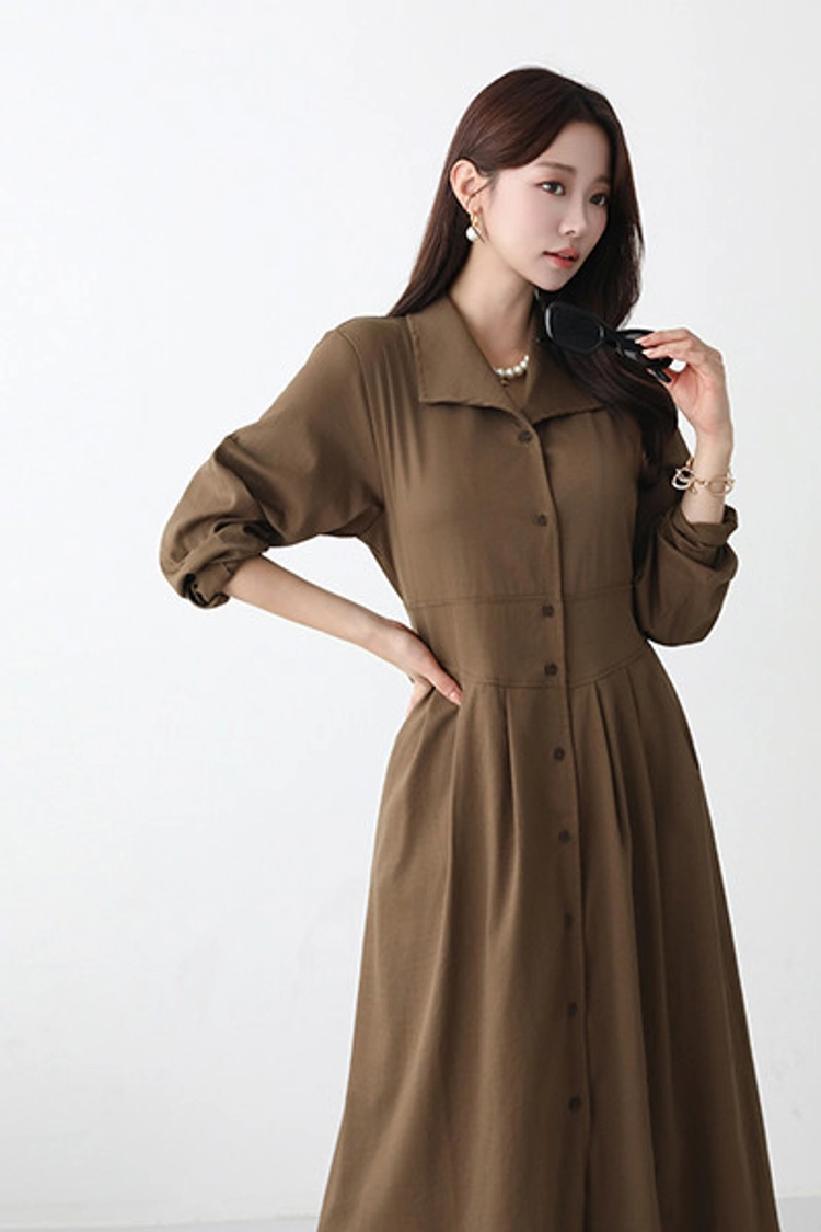 2509P24 氣質系寬腰封皺褶後綁帶好比例洋裝