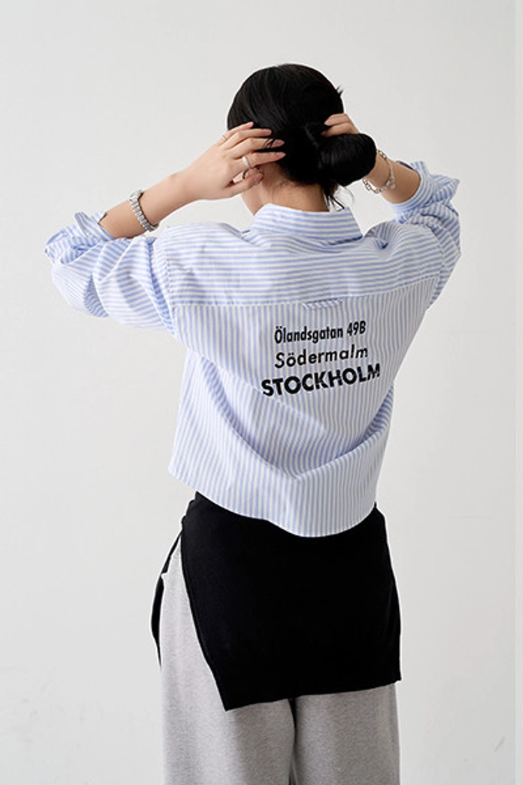 2509P26 背後英文印刷寬鬆剪裁造型襯衫