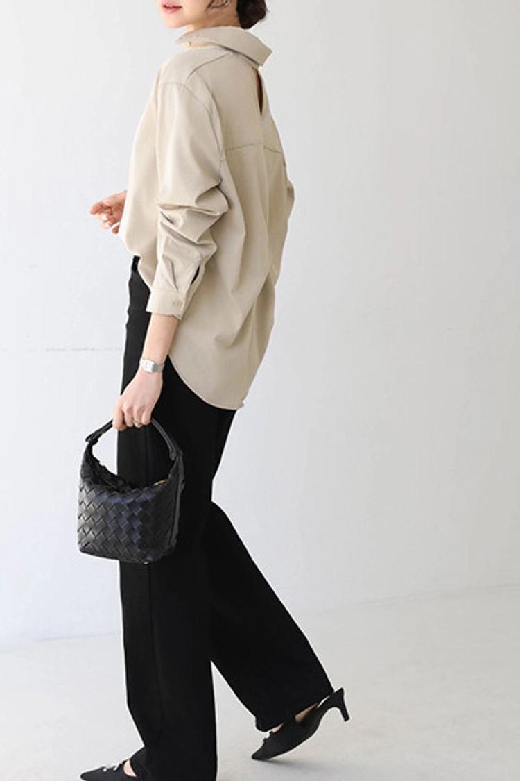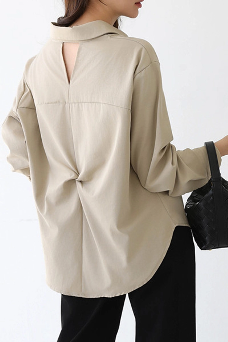 2509P31 寬鬆扭結挖空設計造型襯衫