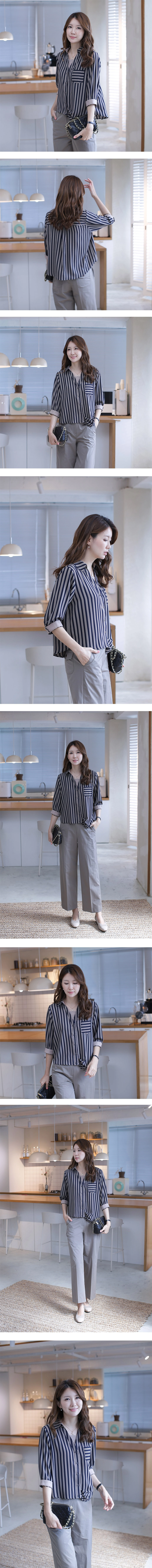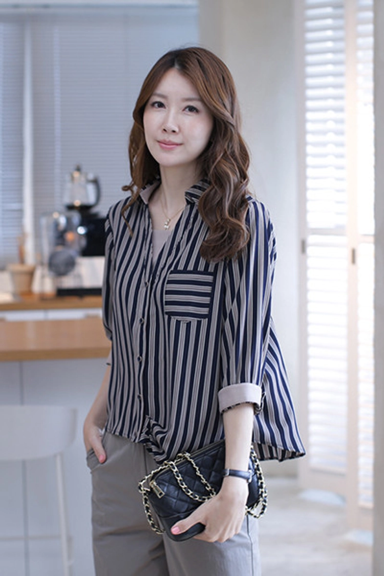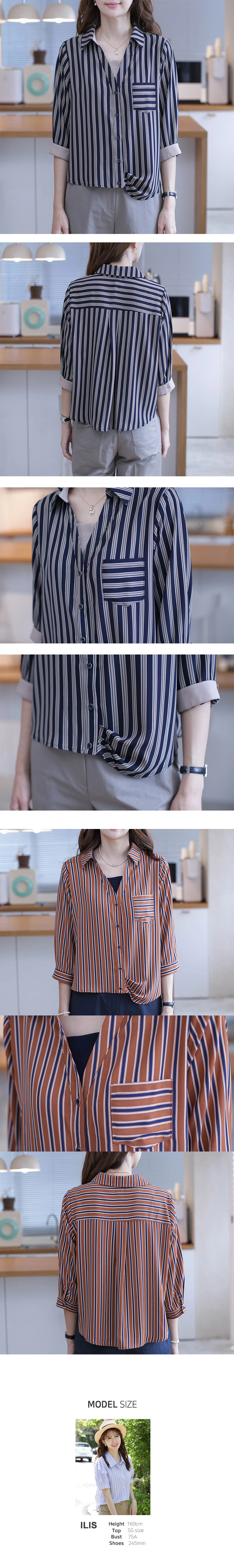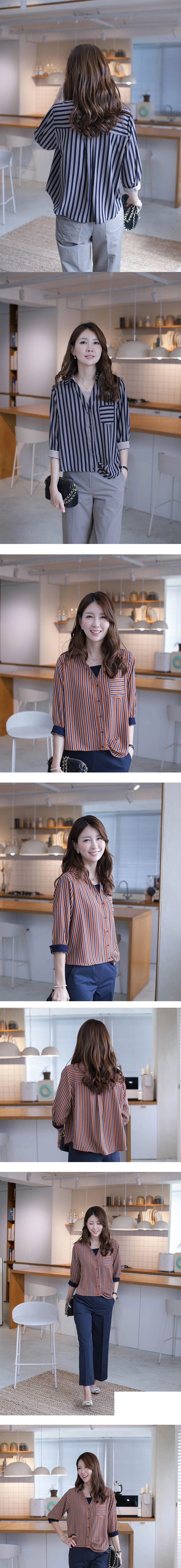 2509T04 假兩件撞色設計絲滑感造型襯衫
