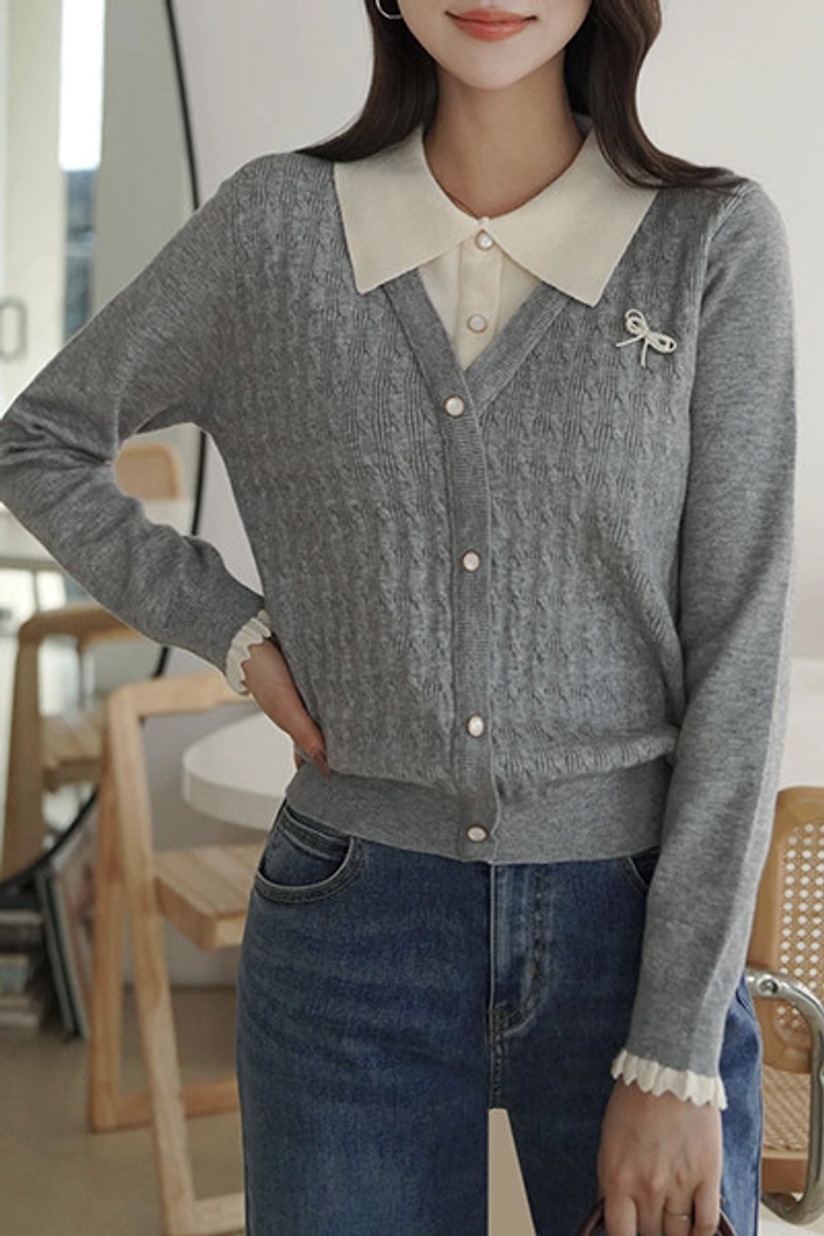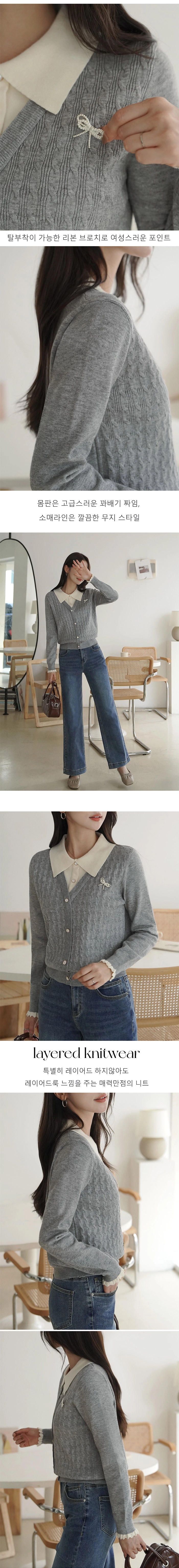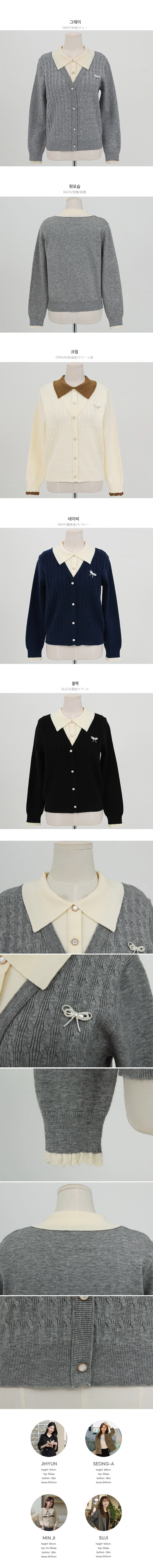 2510C05 撞色假兩件麻花蝴蝶結別針造型上衣