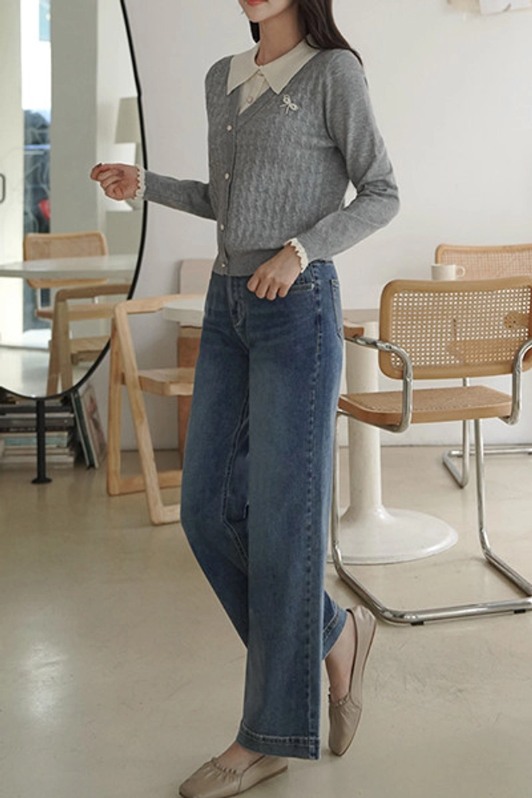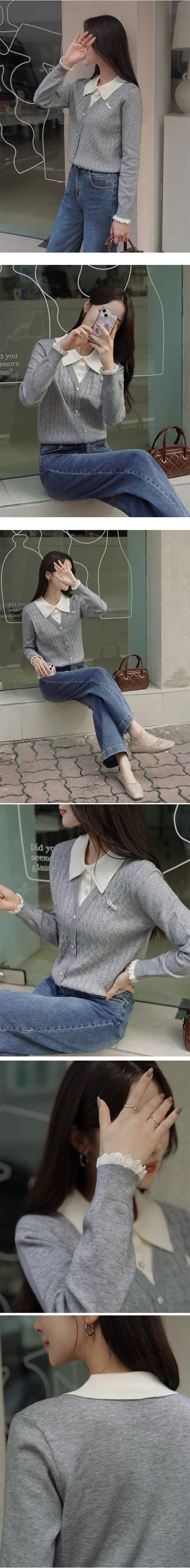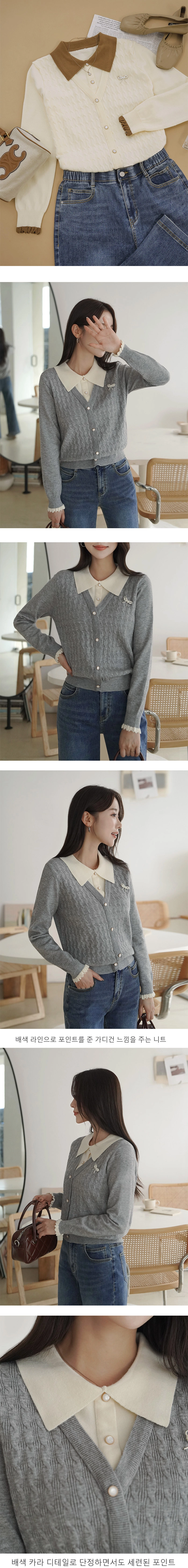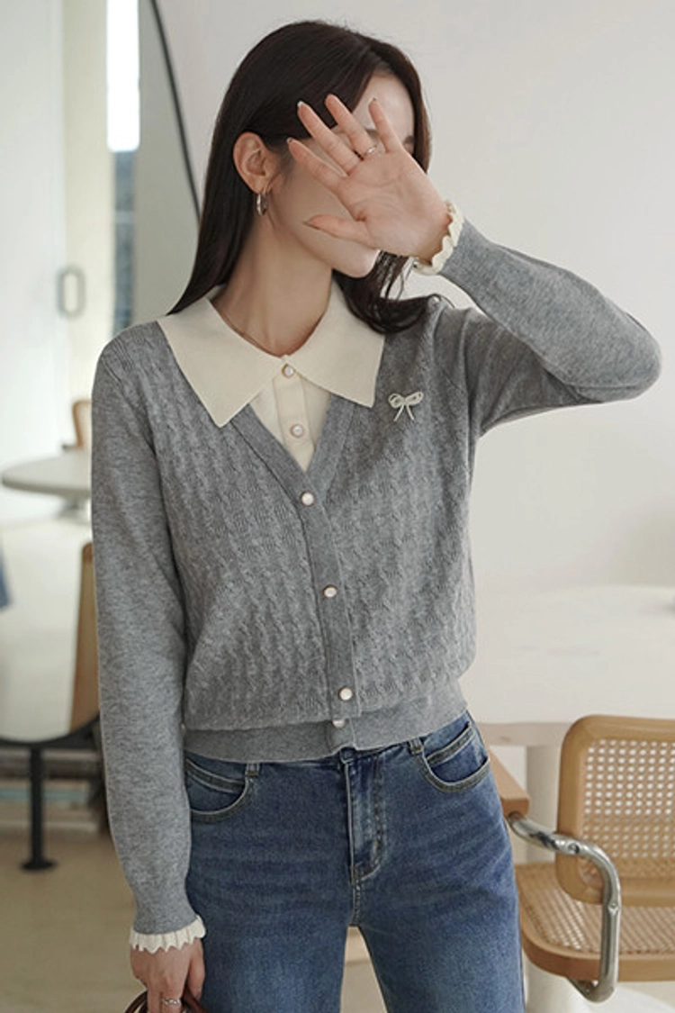 2510C05 撞色假兩件麻花蝴蝶結別針造型上衣