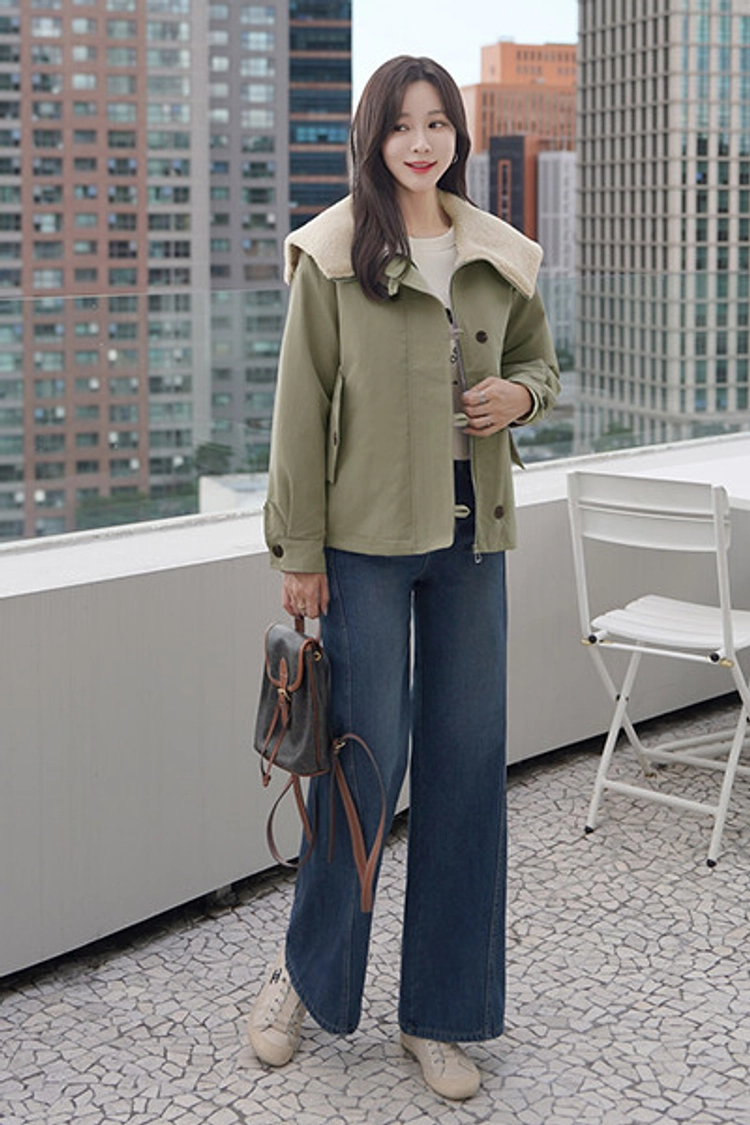 2510C14 毛毛翻領造型內裡做棉防風外套