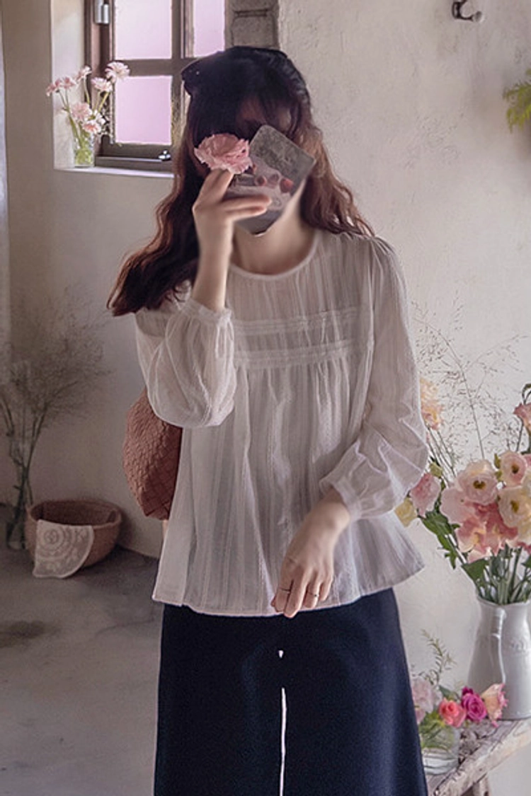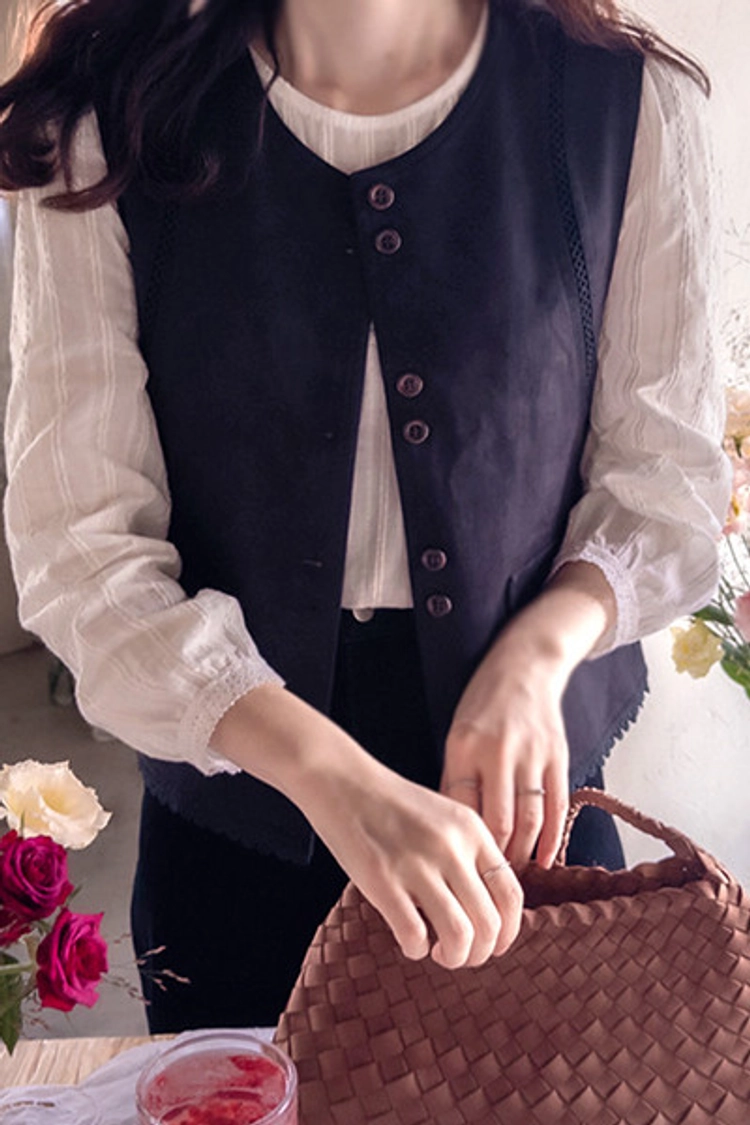 2510L08 浪漫甜美布蕾絲線條造型襯衫