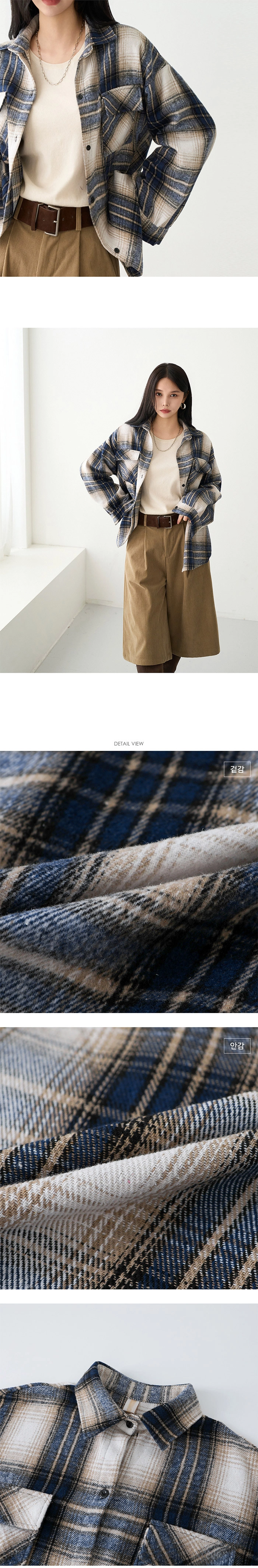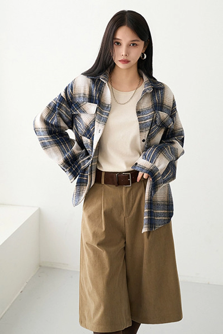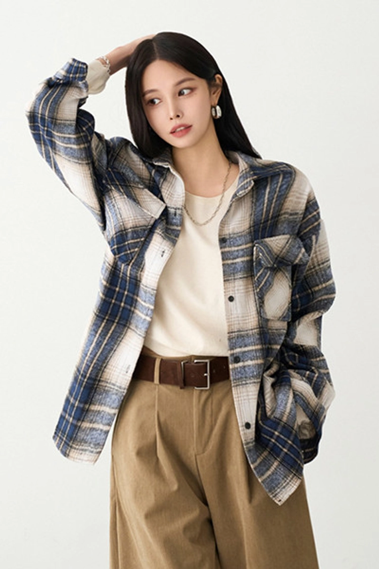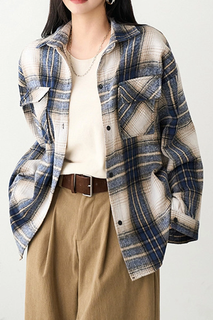 2510P06 經典格紋寬鬆剪裁法蘭絨造型襯衫