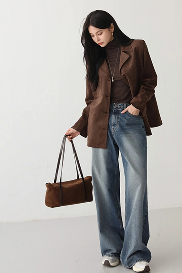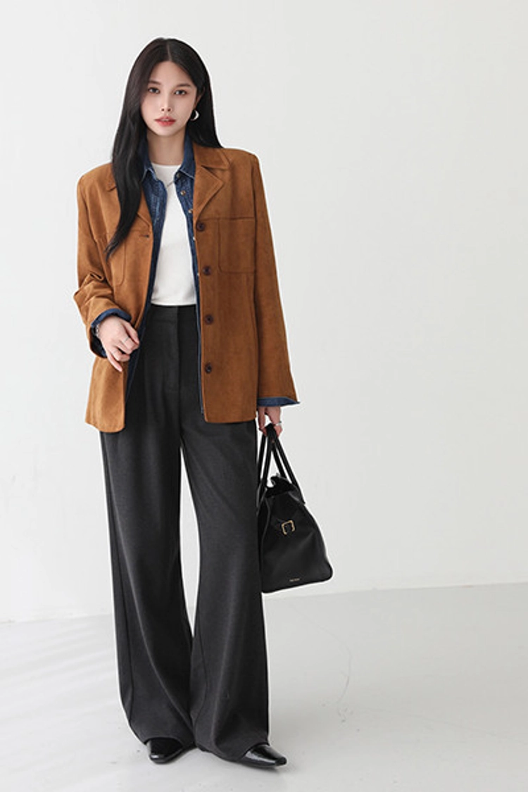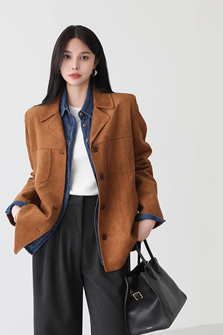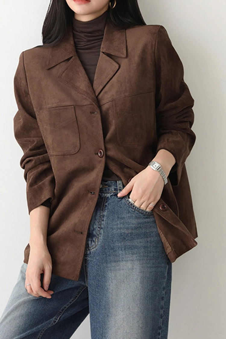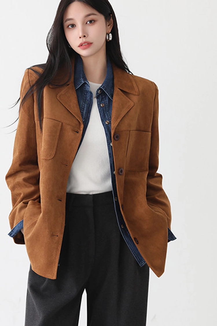 2510P10 簡約時尚口袋設計麂皮西裝外套