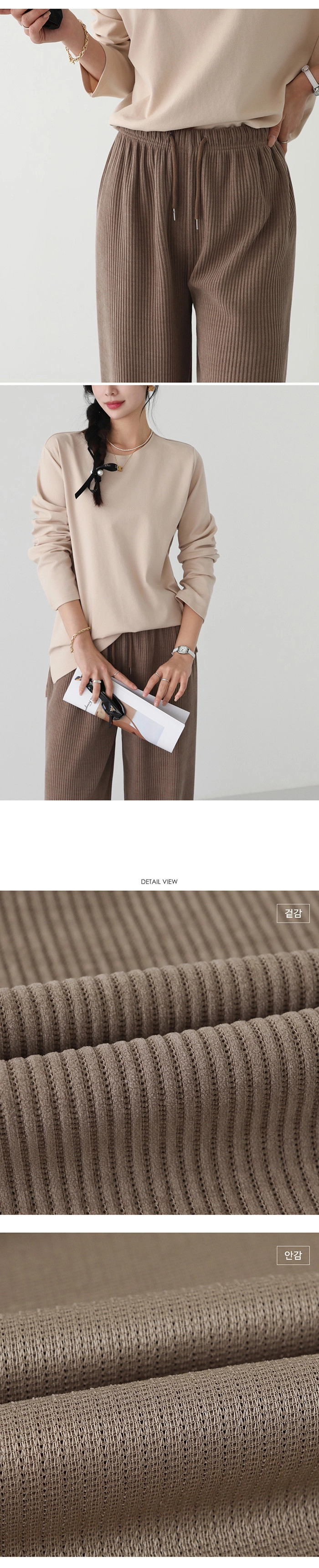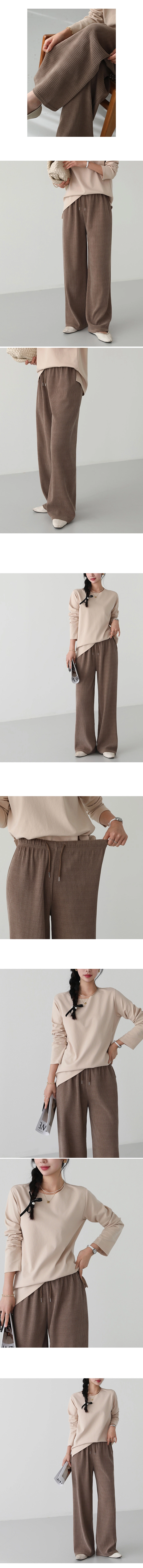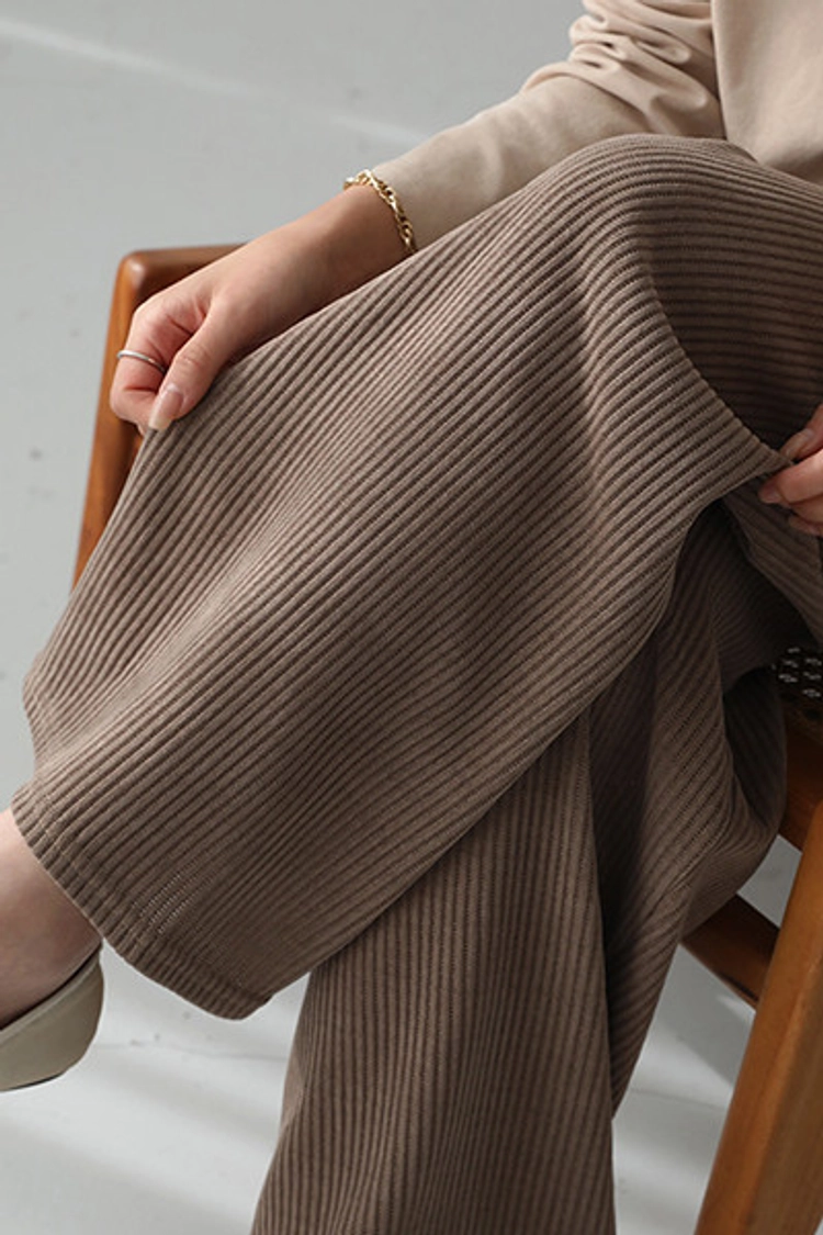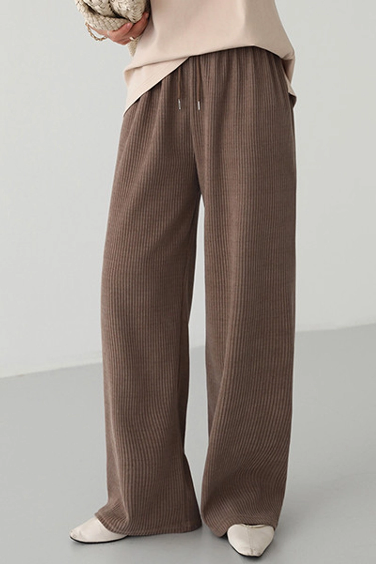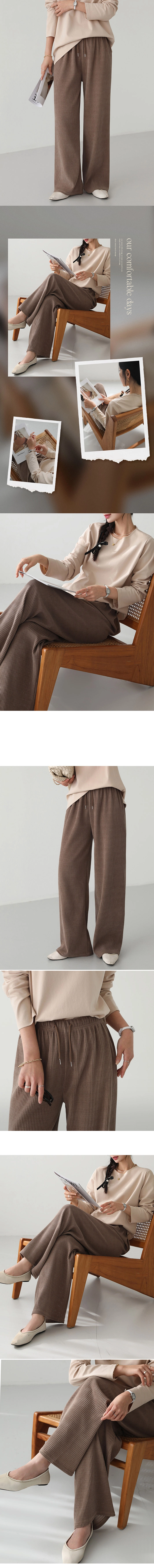 2510P16 抽繩彈性腰圍坑條紋直筒休閒褲