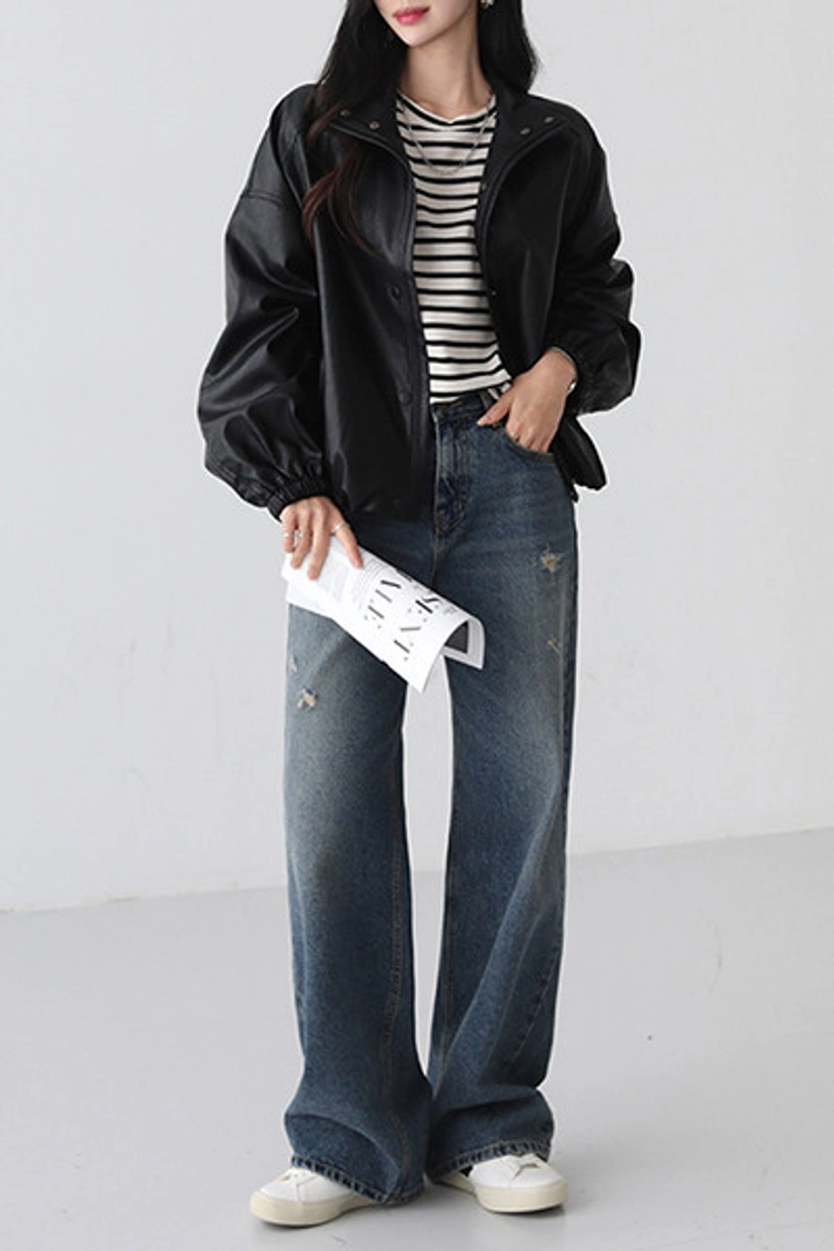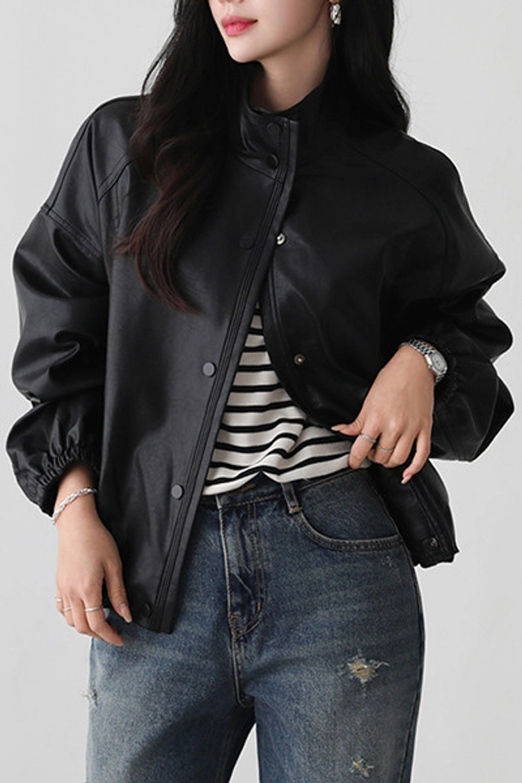 2511P01 簡約有型時尚剪裁皮革外套