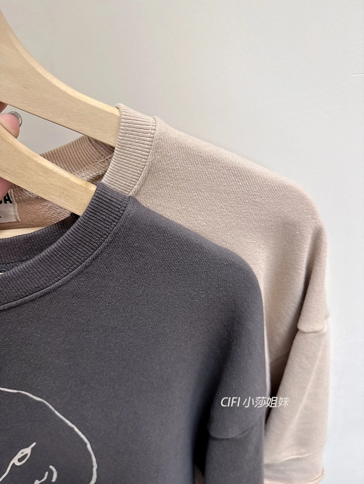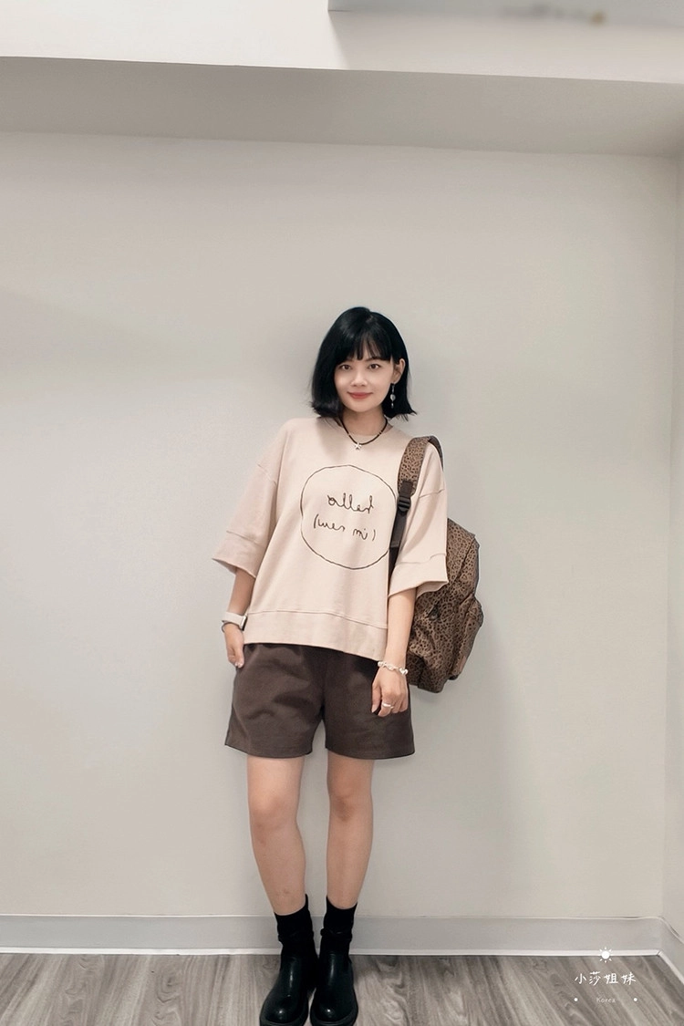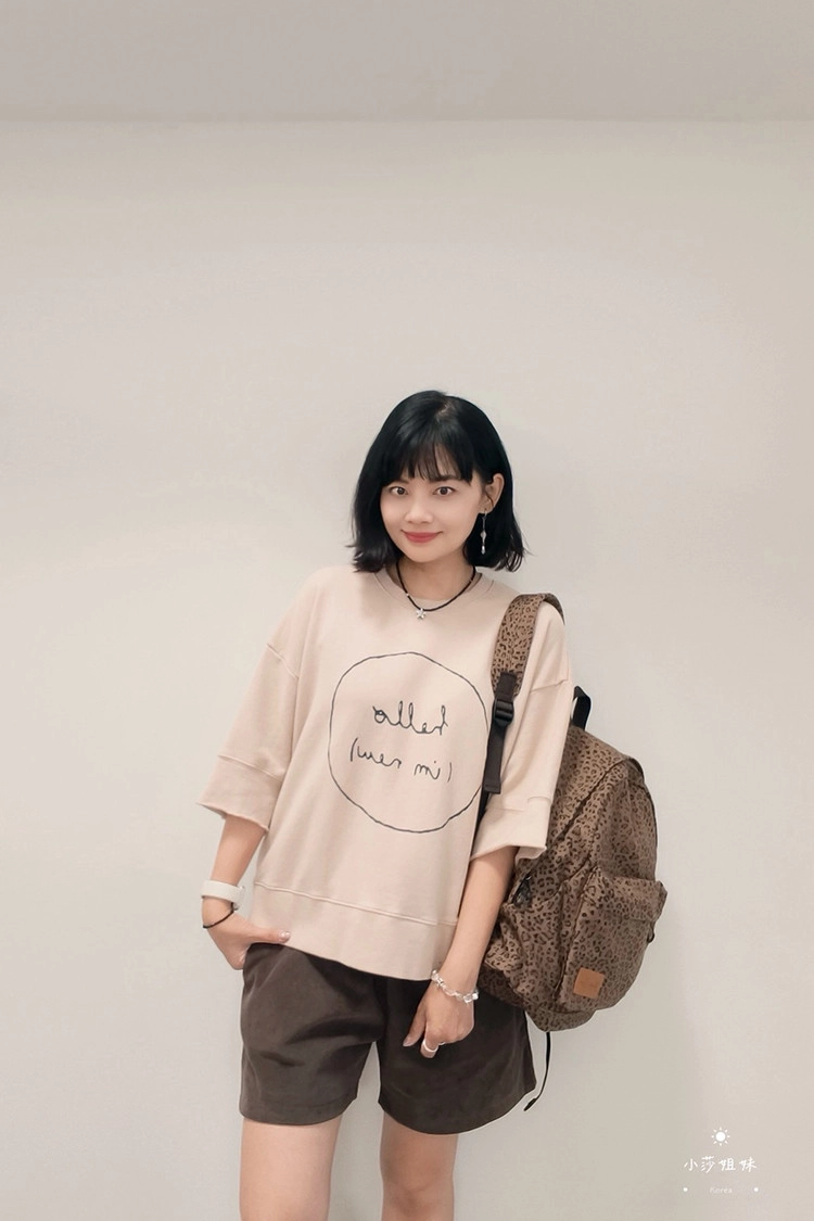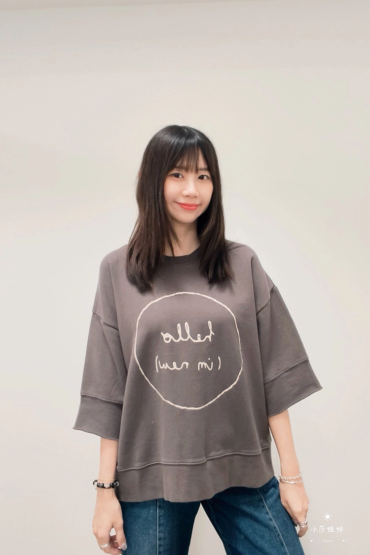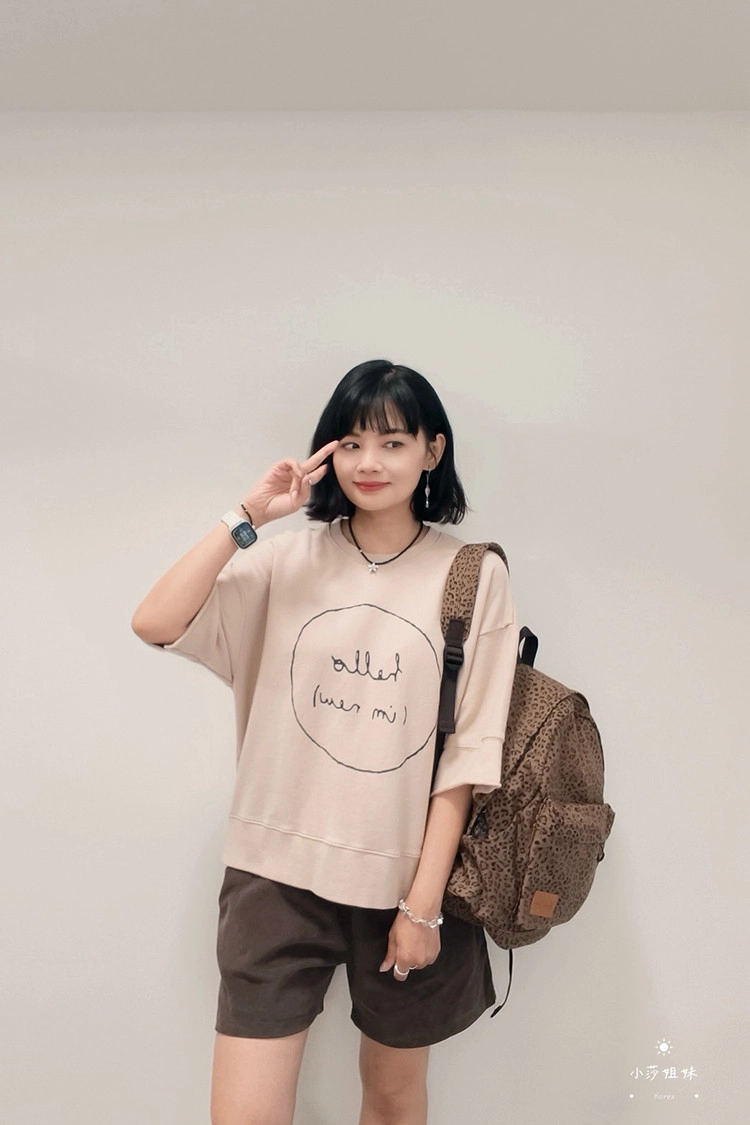 此款商品介紹在影片時間1:52:14適合S-XL號穿尺寸(cm):肩寬61 胸圍124 袖長28 袖圍50 衣長61-65材質:棉產地:韓國洗滌說明:放洗衣袋機洗MODEL 莎妹:159cm/上身S號/下身S號MODEL 小莎:163cm/上身M號/下身M號