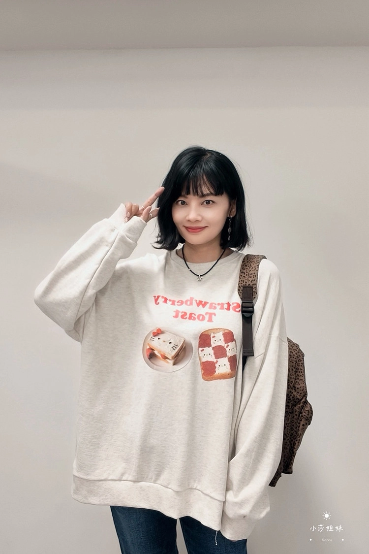 此款商品介紹在影片時間1:49:02厚度偏薄寬鬆剪裁,穿起來是順身顯修身身型適合S-XL號穿尺寸(cm):肩寬77 胸圍146 袖長51 袖圍52 衣長70材質:棉產地:韓國洗滌說明:放洗衣袋機洗MODEL 莎妹:159cm/上身S號/下身S號MODEL 小莎:163cm/上身M號/下身M號