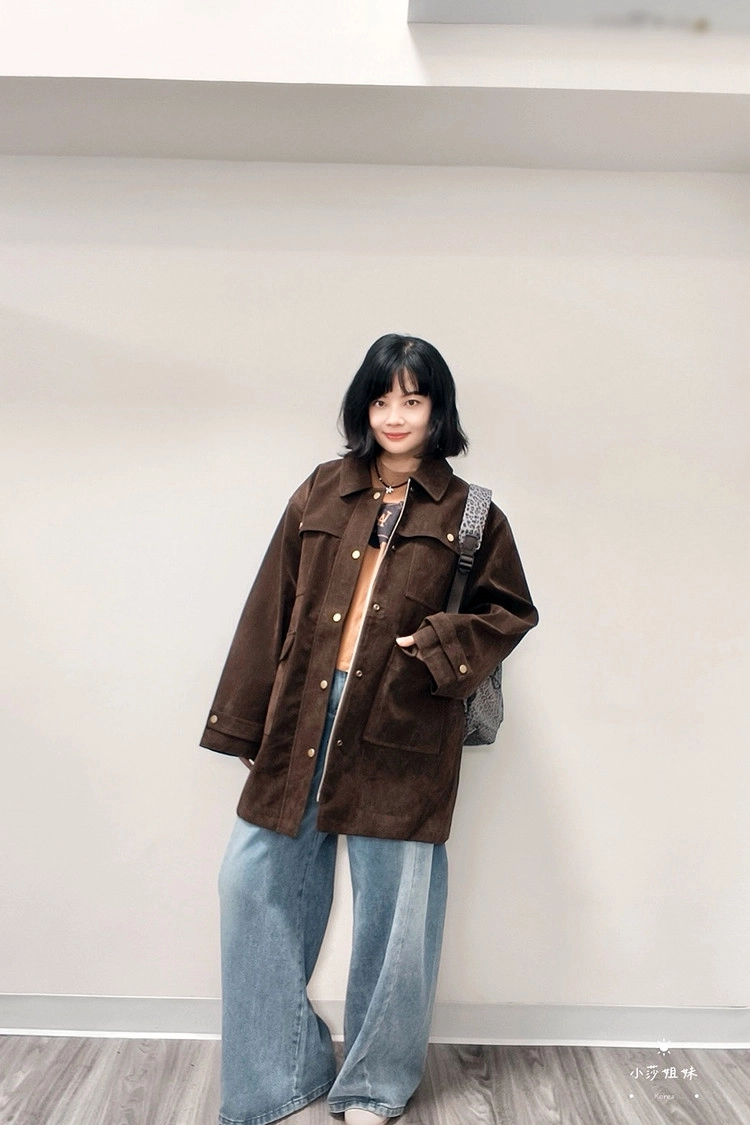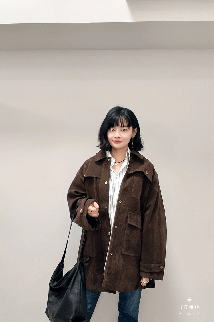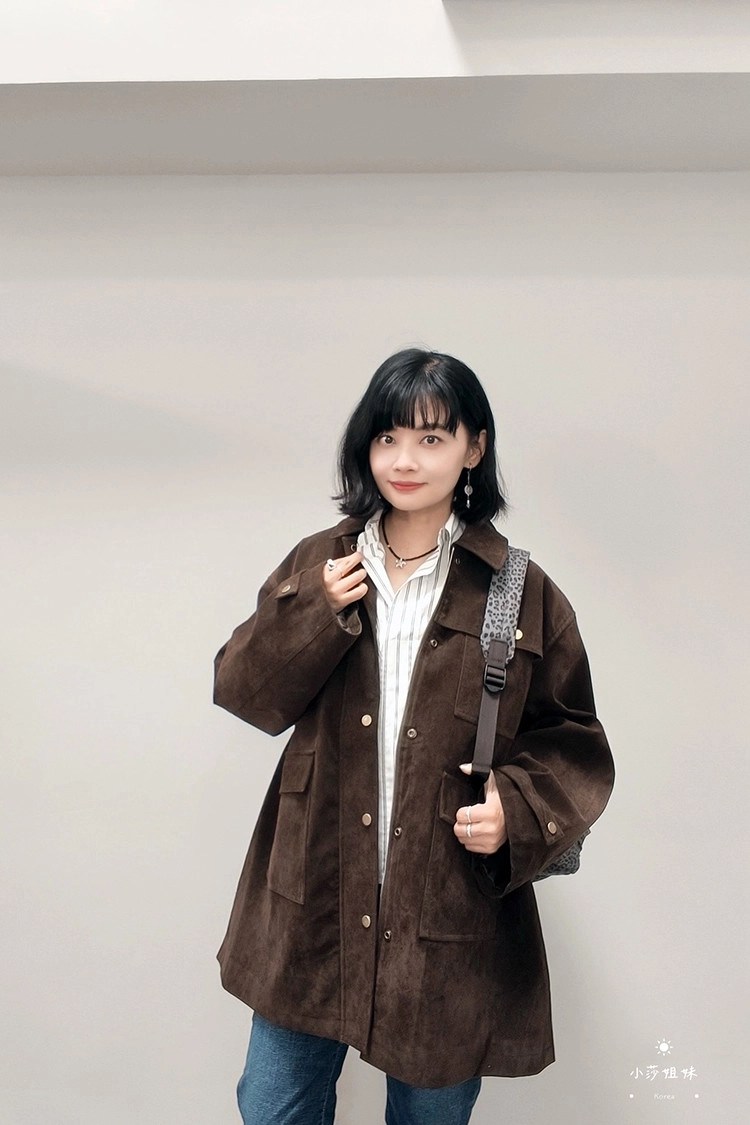 此款商品介紹在影片時間1:30:00尺寸(cm):肩寬53 胸圍126 袖長56 袖圍62 衣長83材質:麂皮/聚酯產地:韓國洗滌說明:放洗衣袋機洗MODEL 莎妹:159cm/上身S號/下身S號MODEL 小莎:163cm/上身M號/下身M號