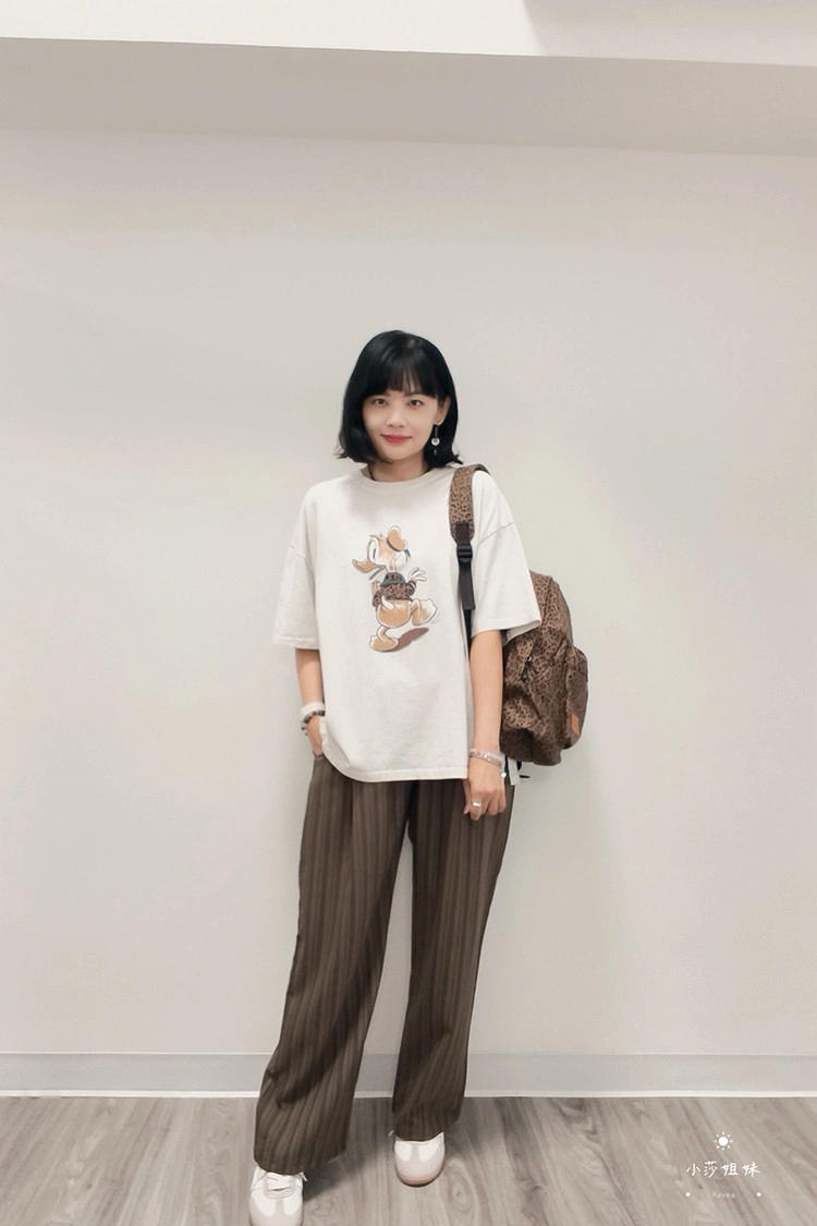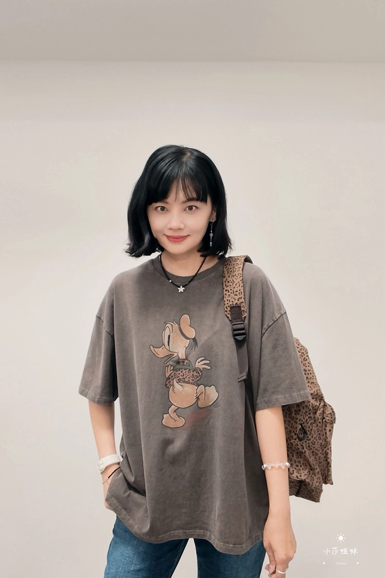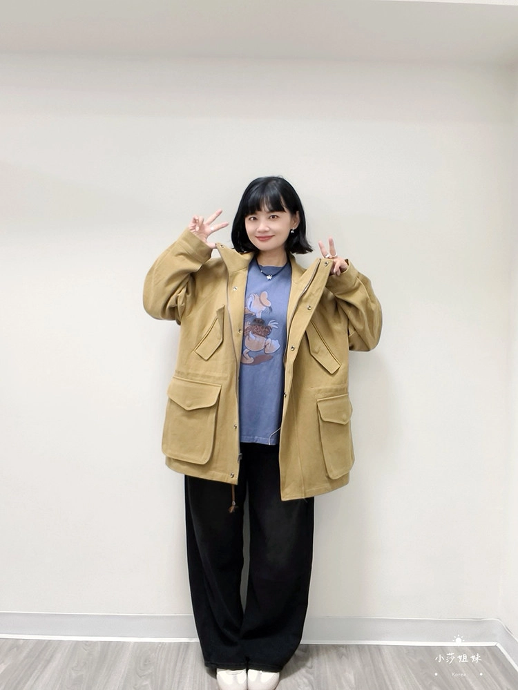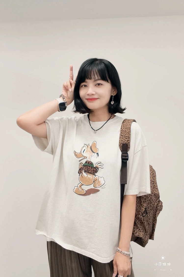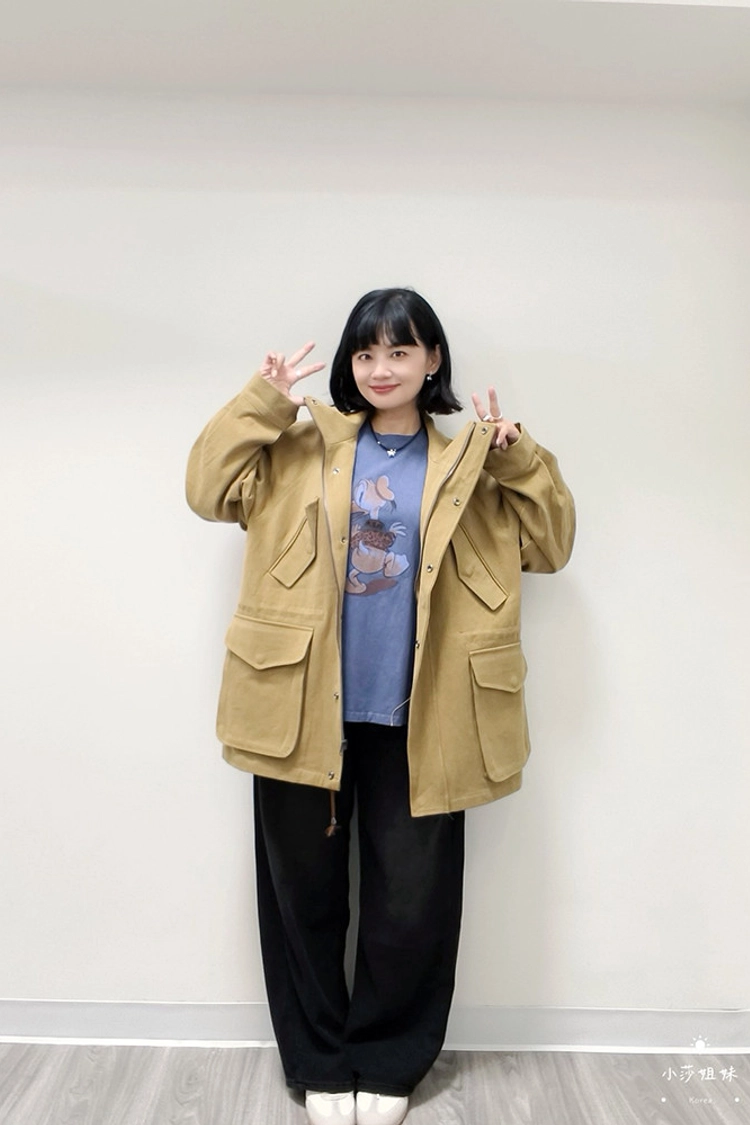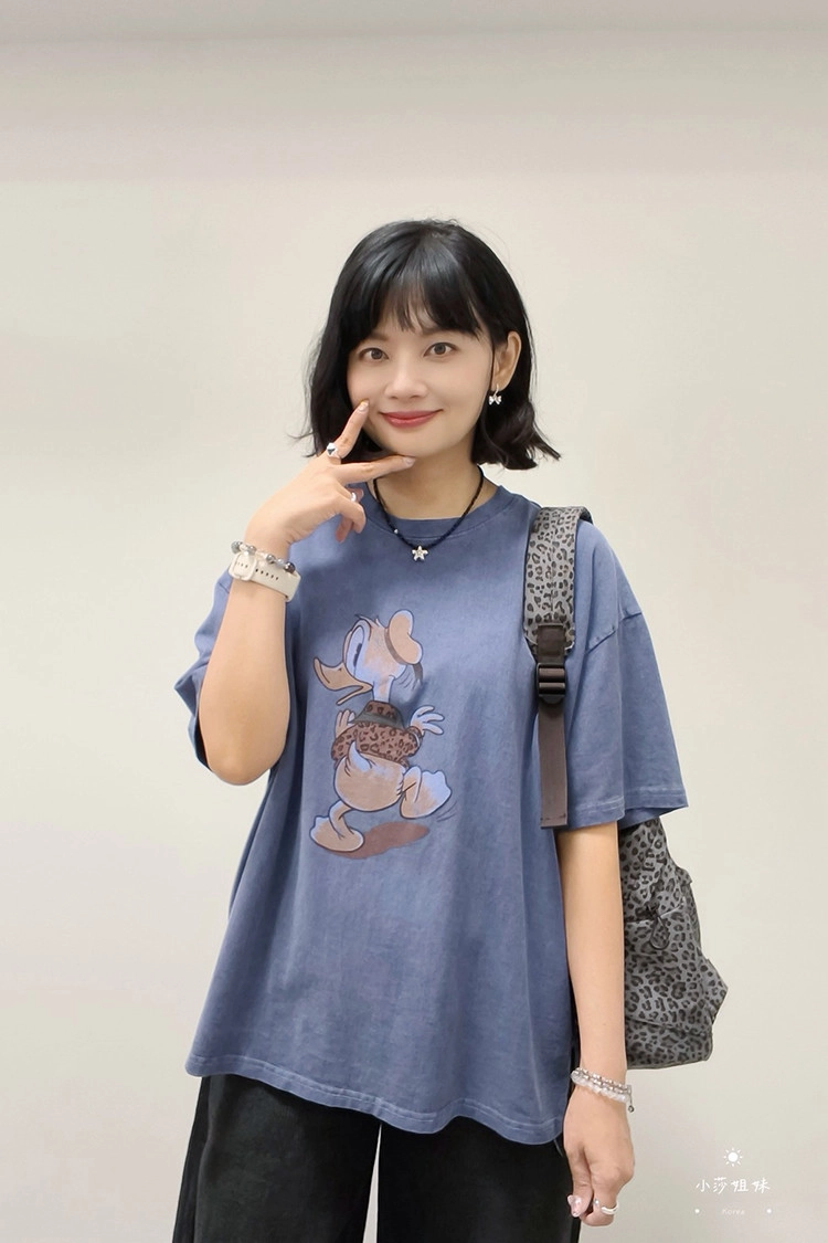此款商品介紹在影片時間1:34:30正版授權薄款,秋冬款,但是夏子穿也ok!適合S-XL號穿尺寸(cm):肩寬60 胸圍126 袖長21 袖圍46 衣長66-69材質:水洗棉產地:韓國洗滌說明:放洗衣袋機洗MODEL 莎妹:159cm/上身S號/下身S號MODEL 小莎:163cm/上身M號/下身M號