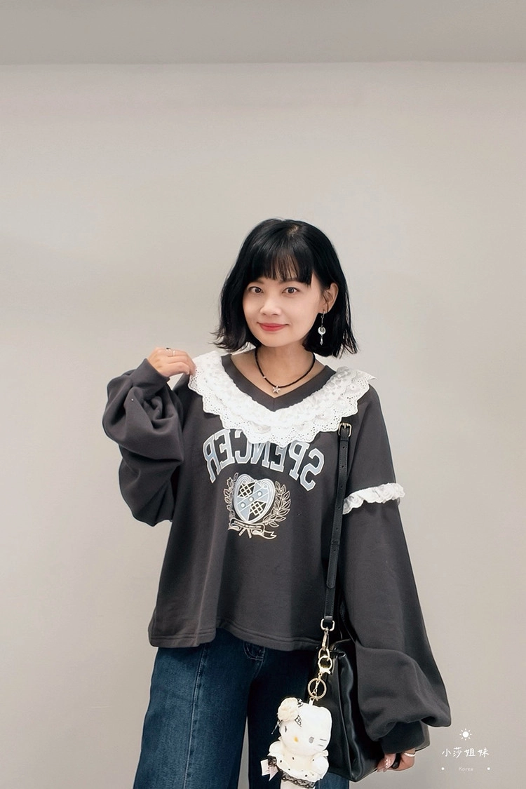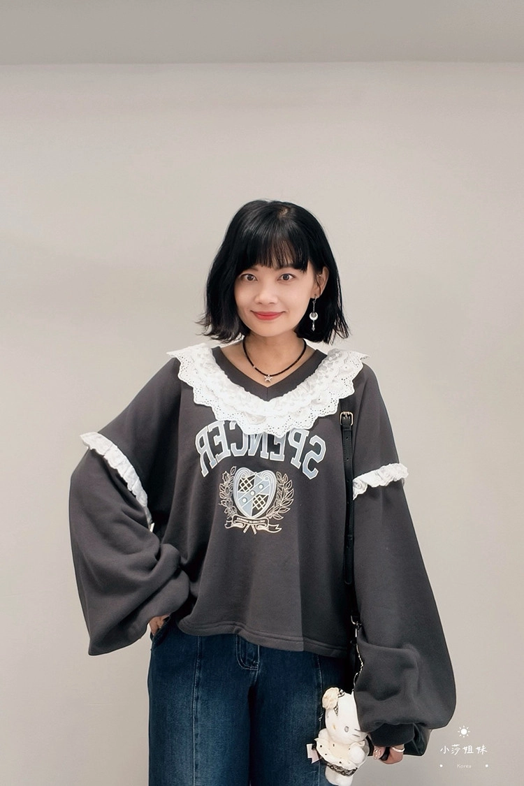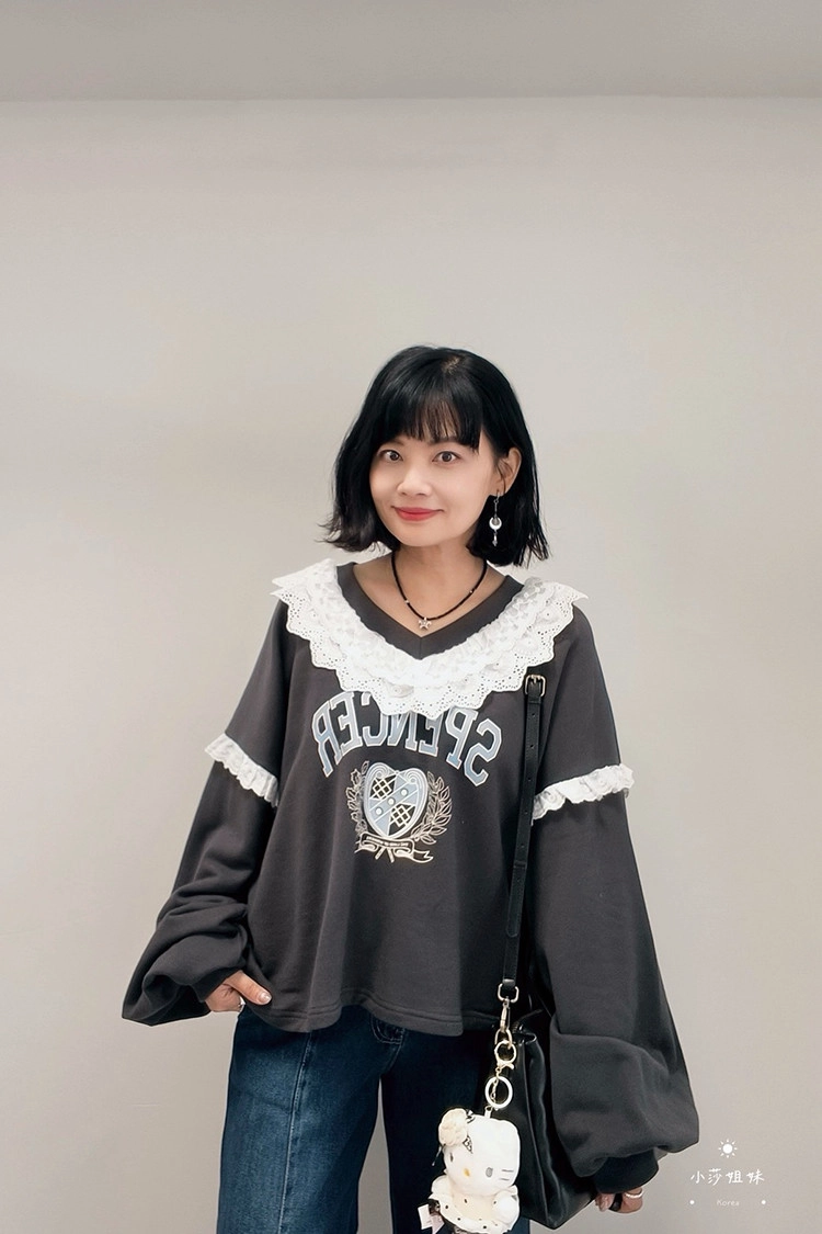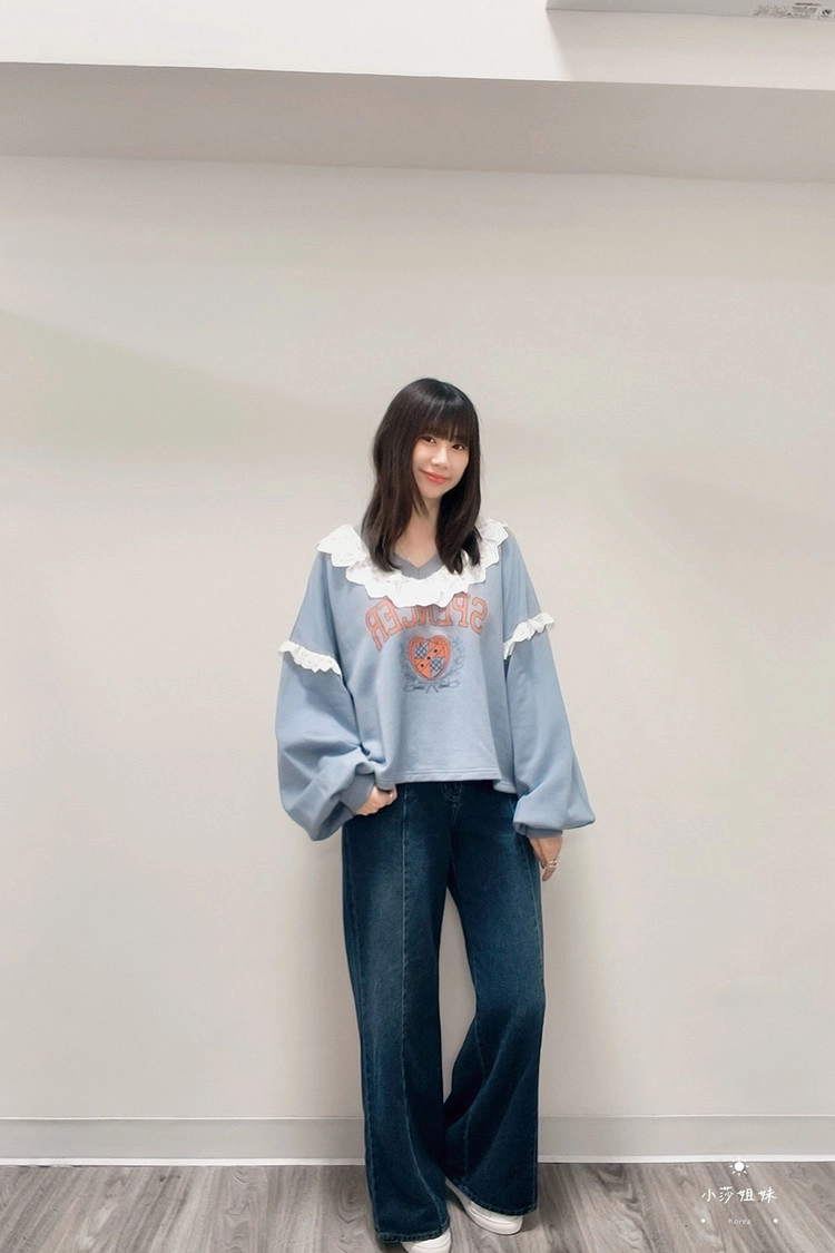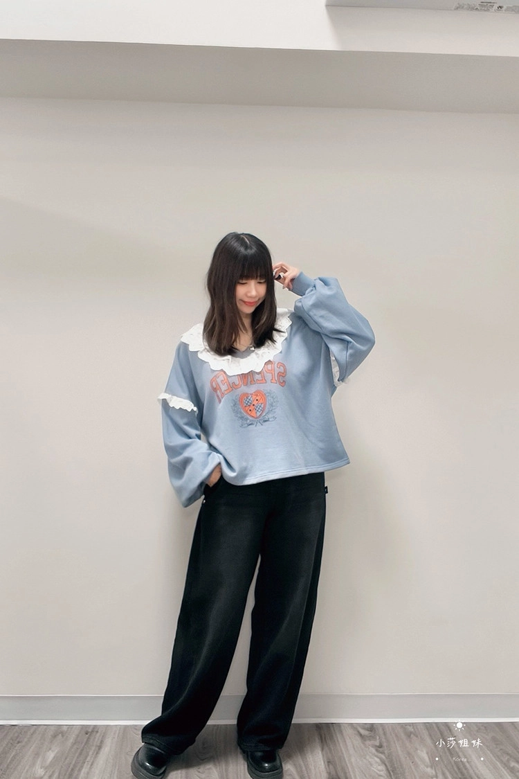 此款商品介紹在影片時間39:00尺寸(cm):肩寬73 胸圍136 袖長52 袖圍50 衣長55材質:棉、布蕾絲產地:韓國洗滌說明:放洗衣袋機洗MODEL 莎妹:159cm/上身S號/下身S號MODEL 小莎:163cm/上身M號/下身M號