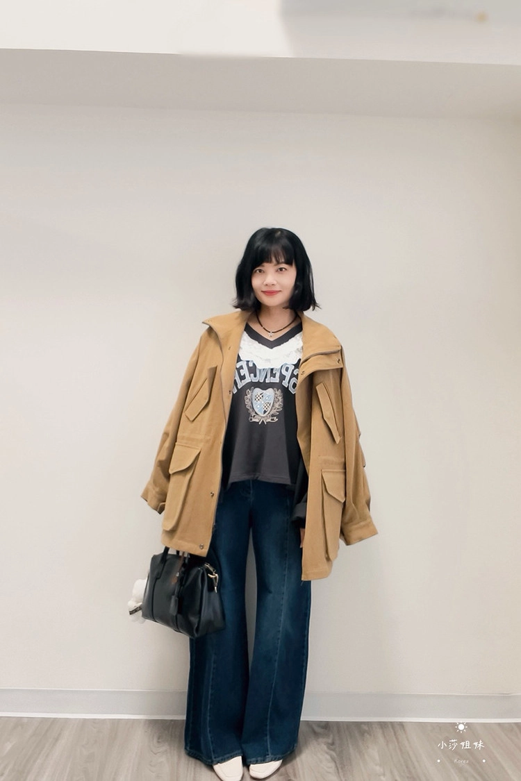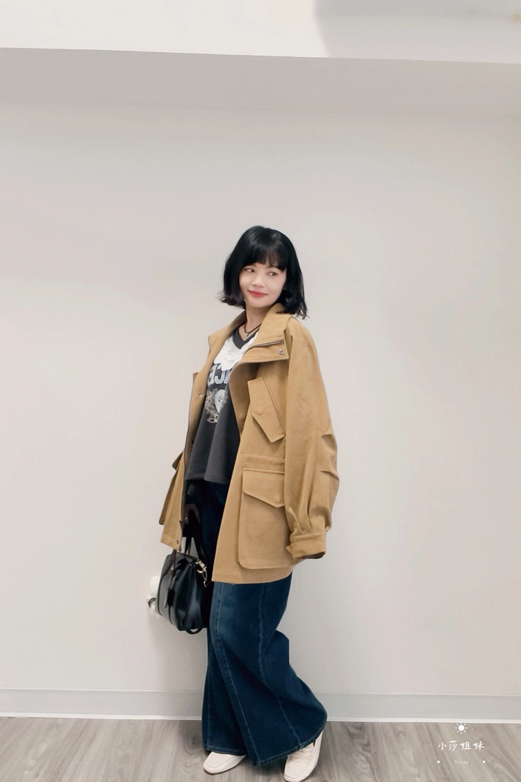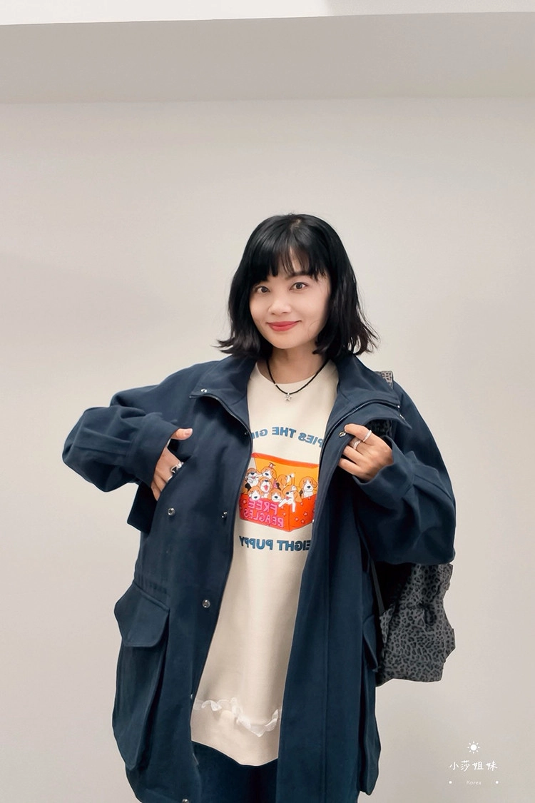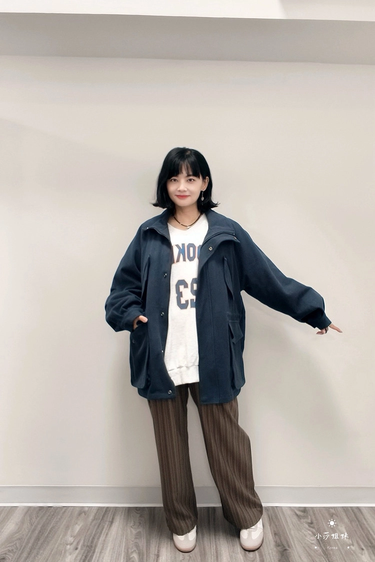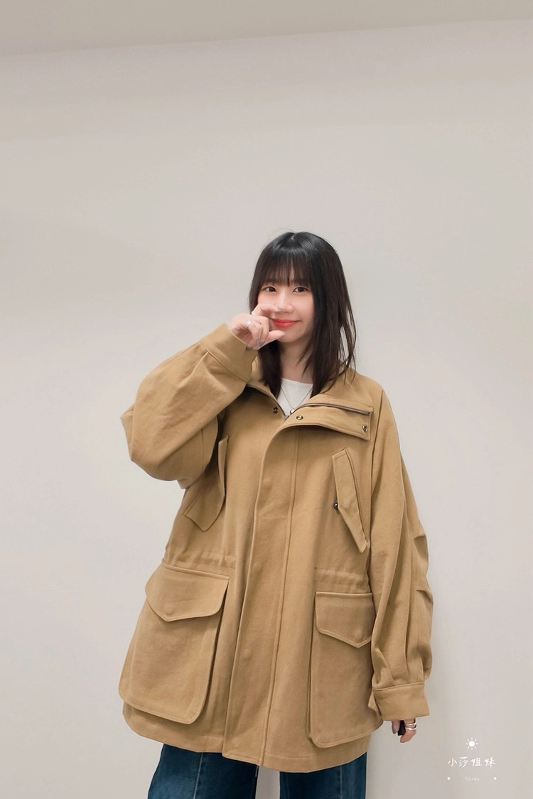 此款商品介紹在影片時間38:47尺寸(cm):肩寬+袖長76 胸圍128 袖圍56 衣長82材質:棉+聚酯產地:韓國洗滌說明:放洗衣袋機洗MODEL 莎妹:159cm/上身S號/下身S號MODEL 小莎:163cm/上身M號/下身M號
