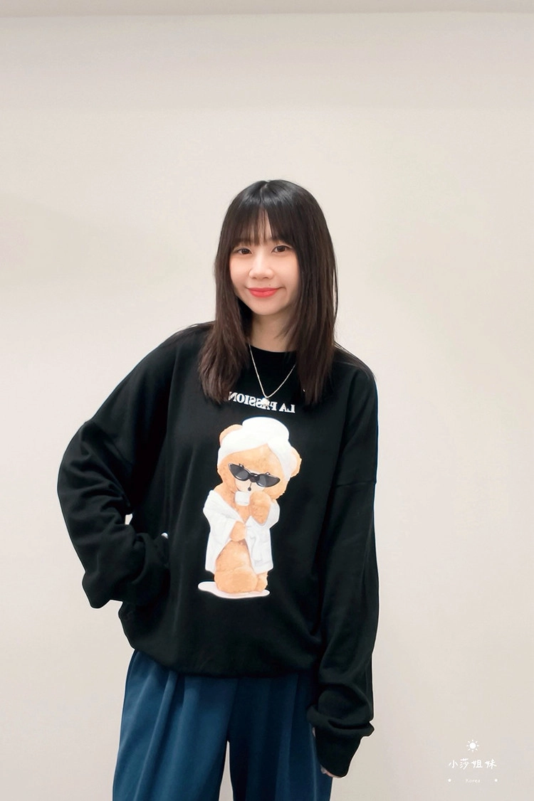 此款商品介紹在影片時間1:33:00尺寸(cm):肩寬76 胸圍140 袖長50 袖圍50 衣長70材質:棉產地:韓國洗滌說明:放洗衣袋機洗MODEL 莎妹:159cm/上身S號/下身S號MODEL 小莎:163cm/上身M號/下身M號