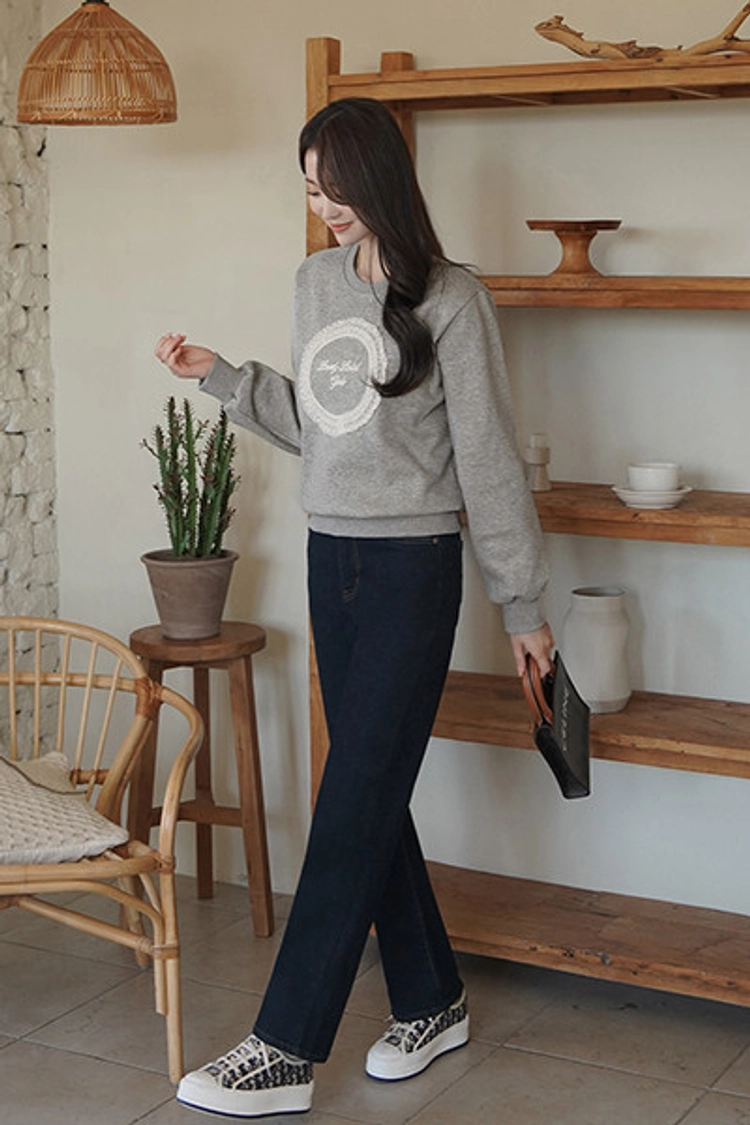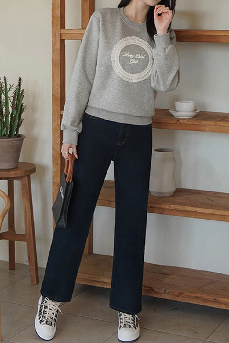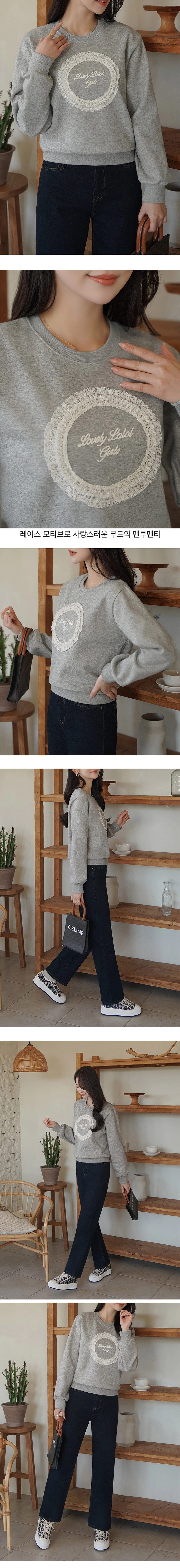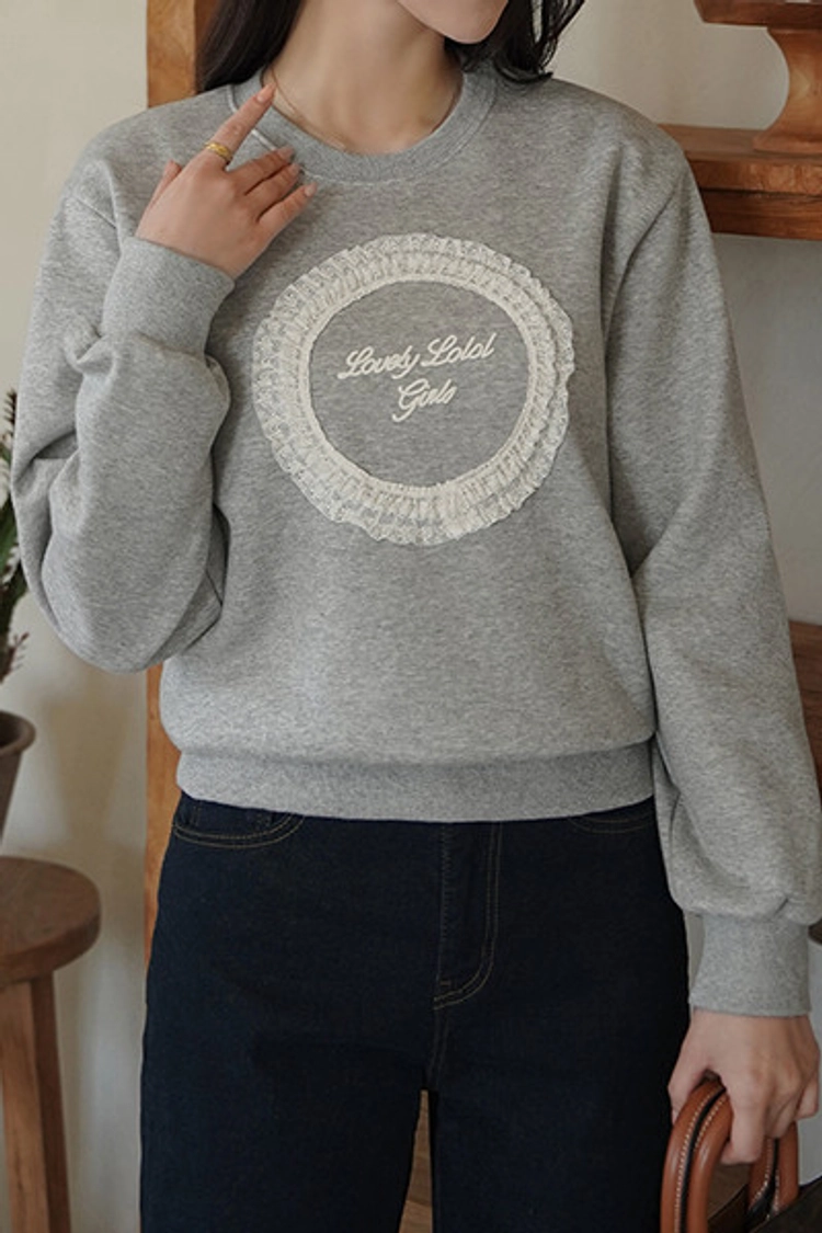 2512C06 蕾絲英文拚接內刷毛棉上衣