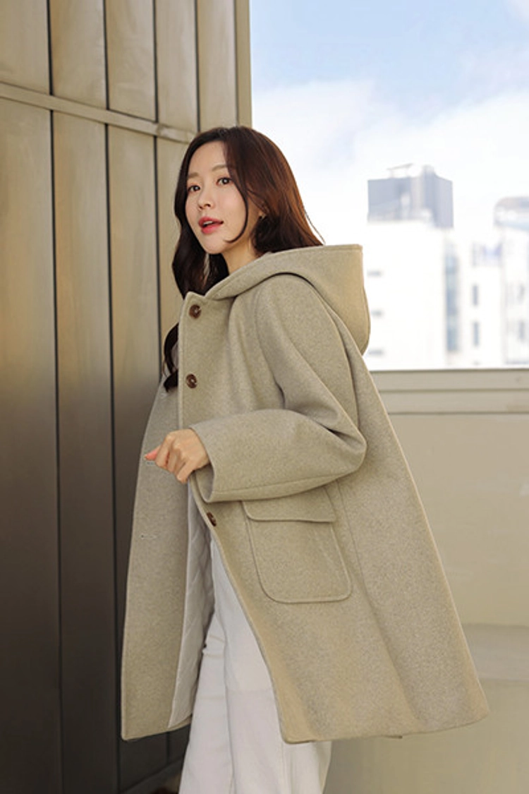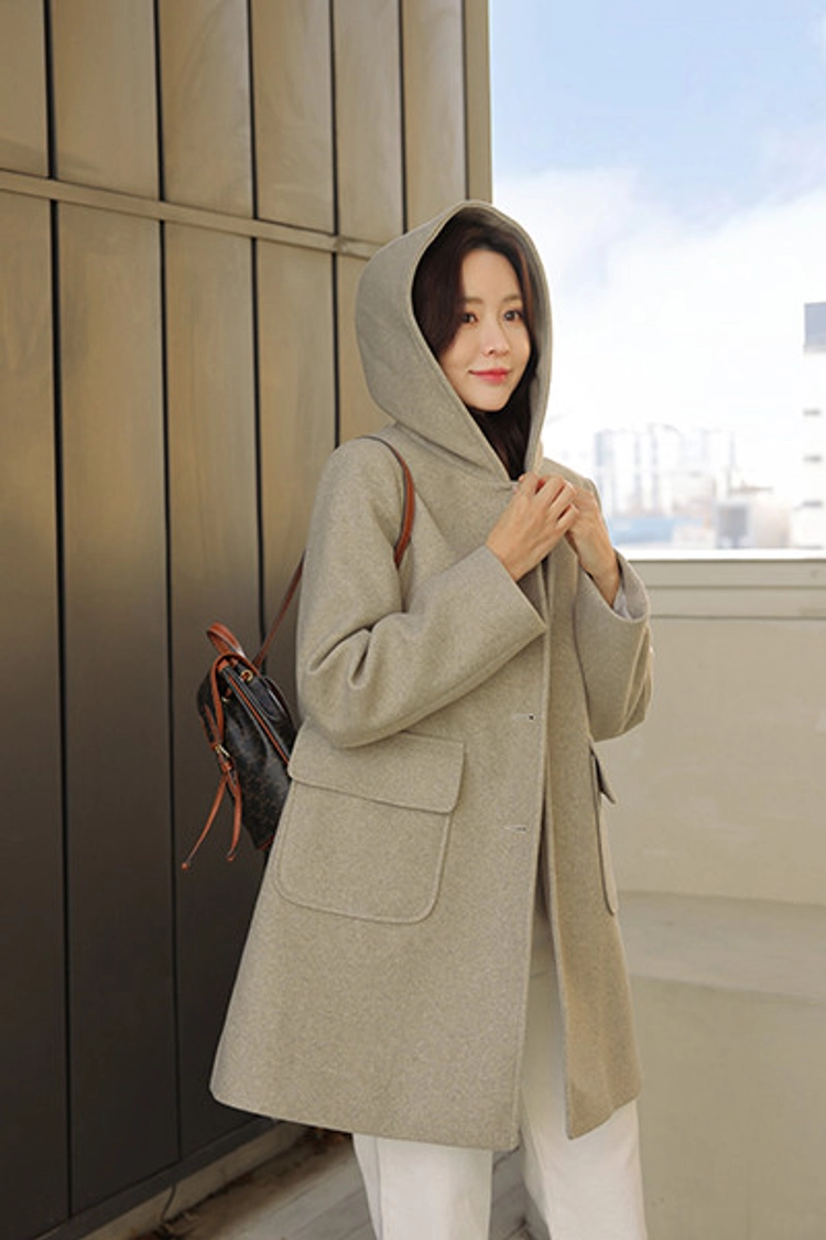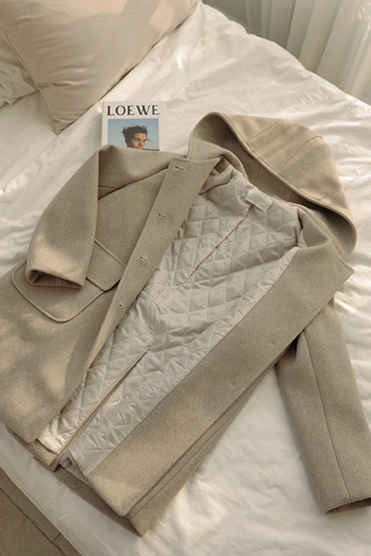 2512C10 質感性內裡舖棉連帽傘擺大衣外套