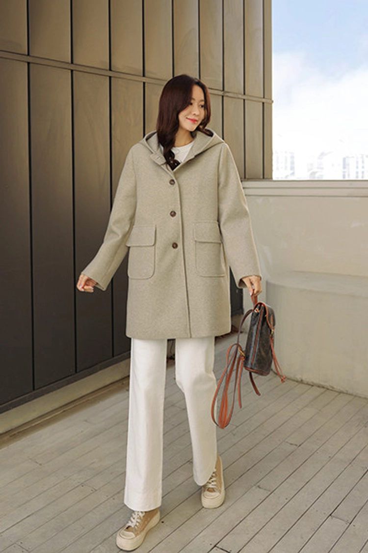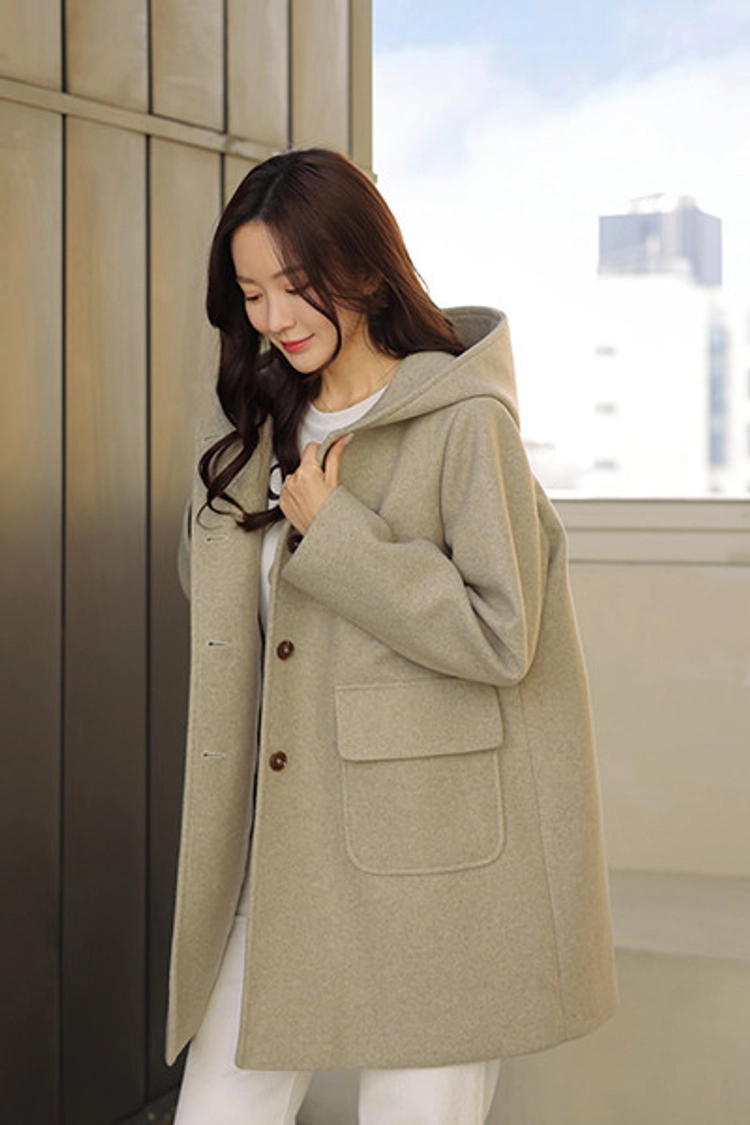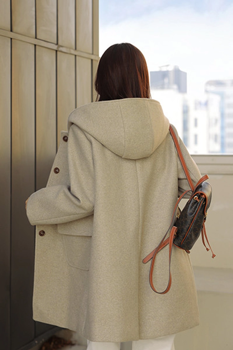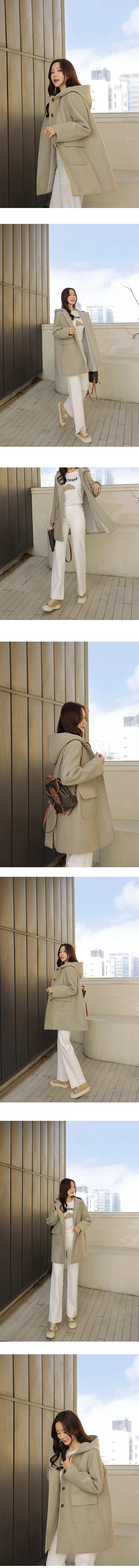 2512C10 質感性內裡舖棉連帽傘擺大衣外套