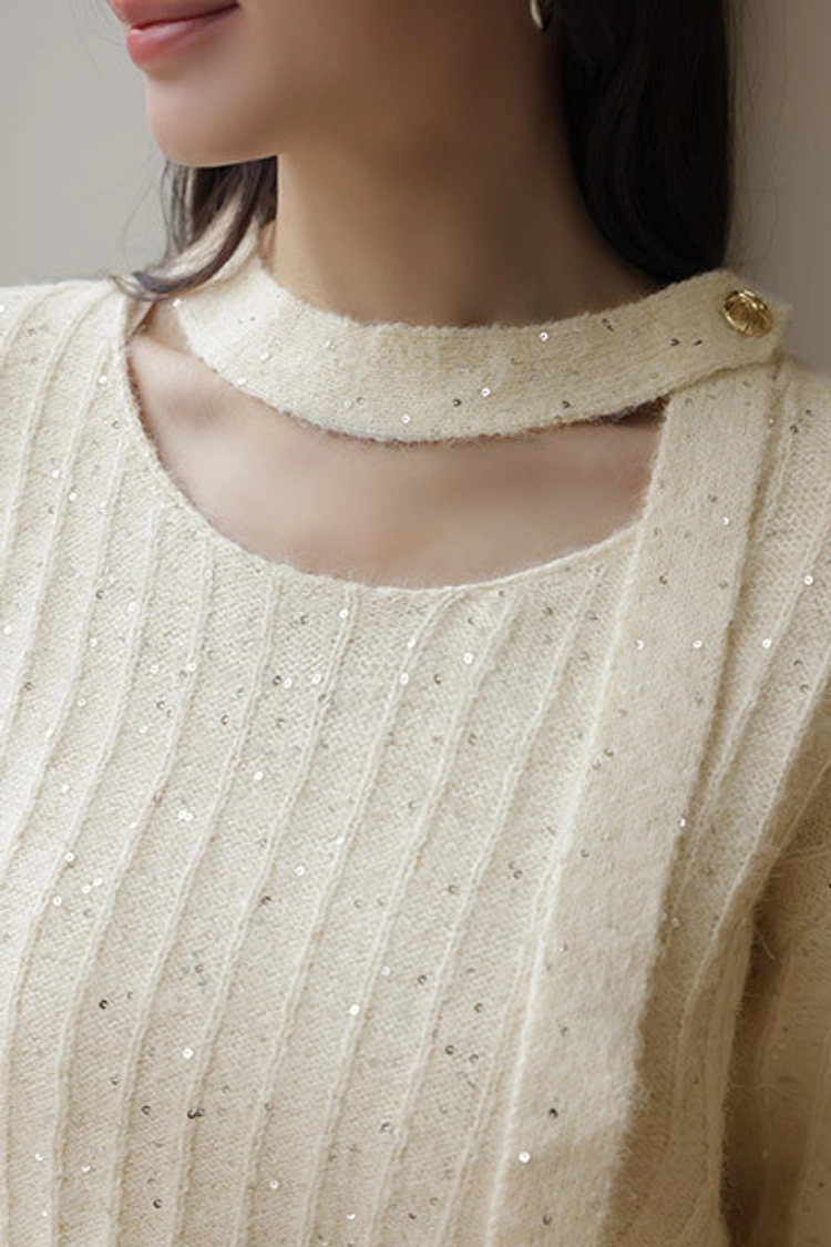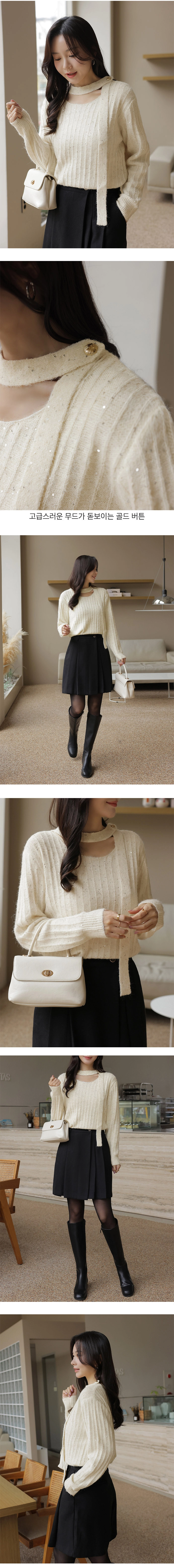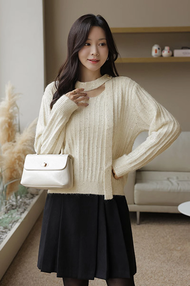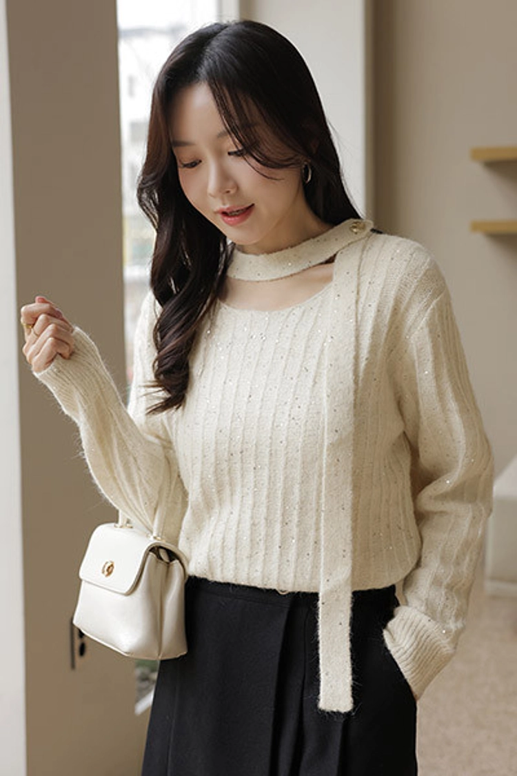 2512C13 氣質系條紋亮金屬小圍巾針織上衣