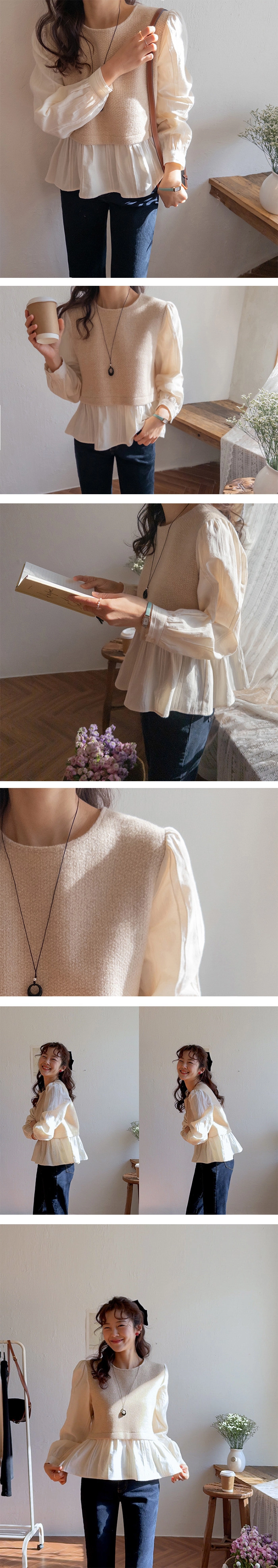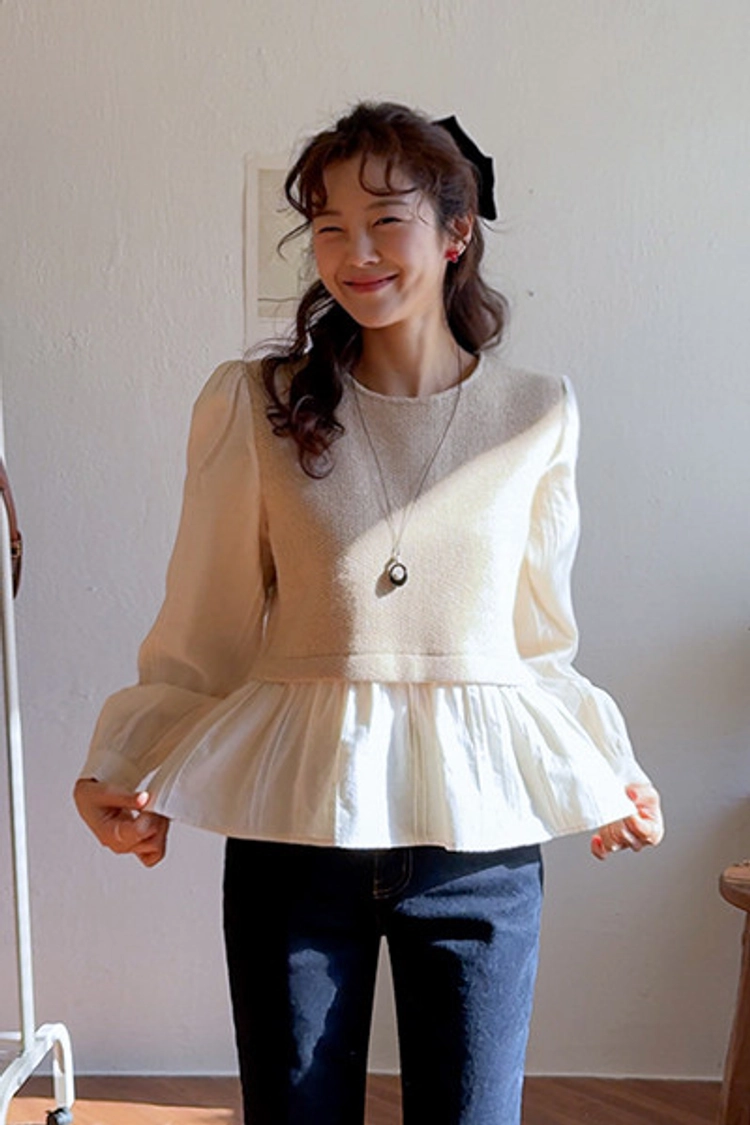 2512L02 異材質拚接好看造型上衣