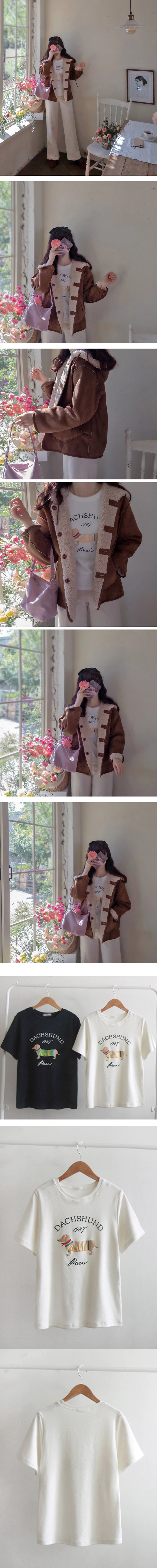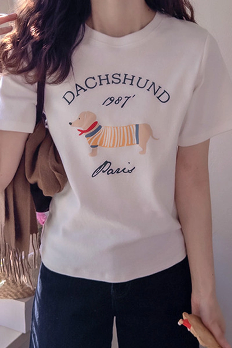 2512L08 小狗狗塗鴉厚磅棉彈性短袖上衣