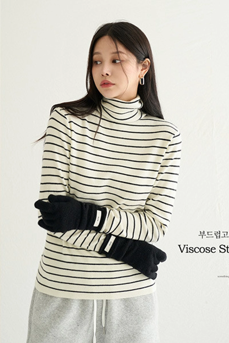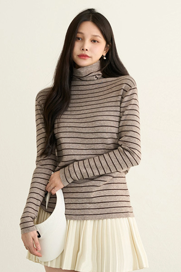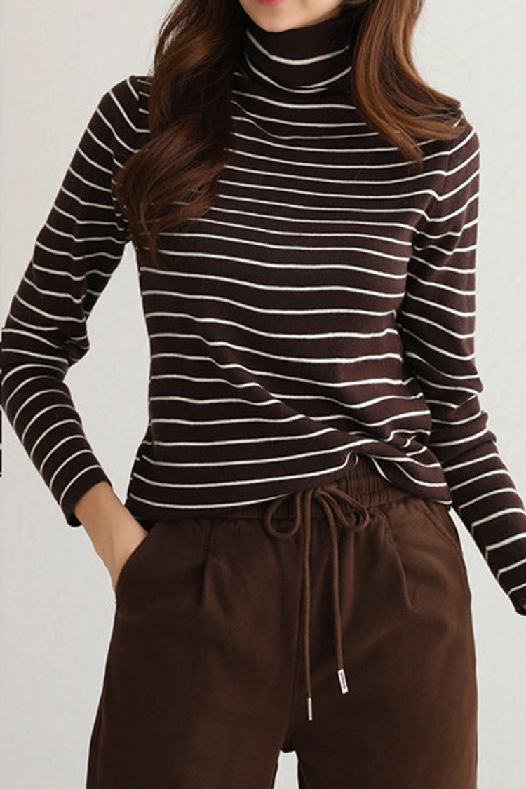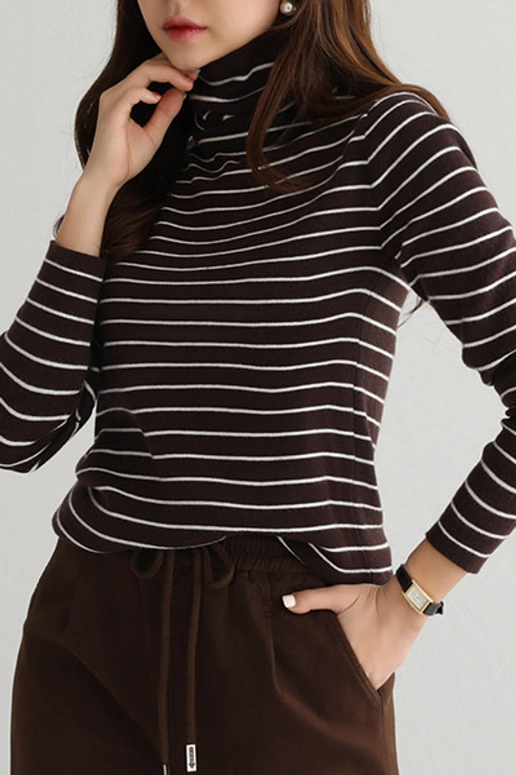 2512P14 基本款.柔軟舒適條紋高領上衣
