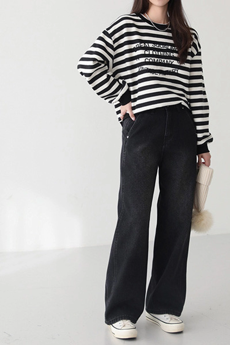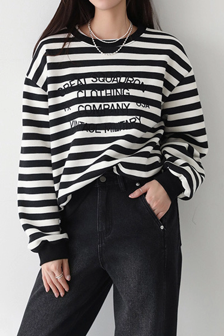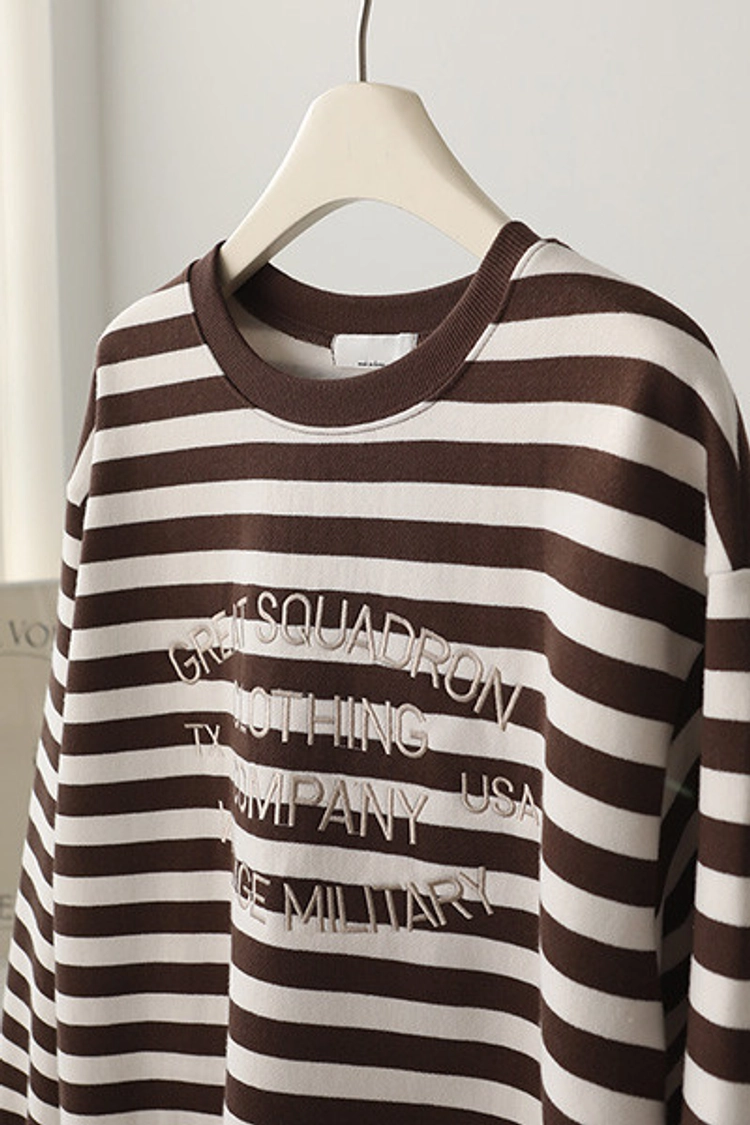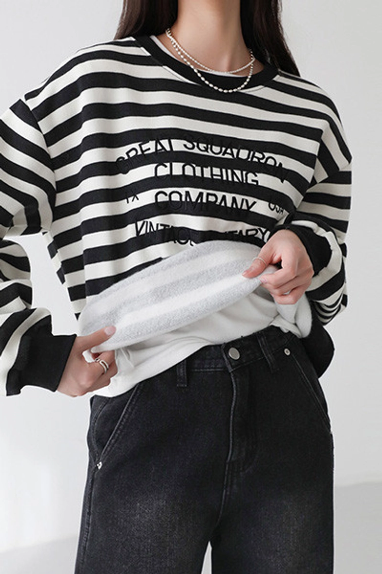 2512P19 英文字條紋內刷毛棉上衣