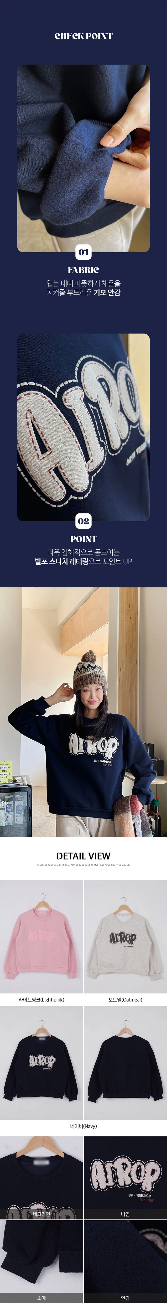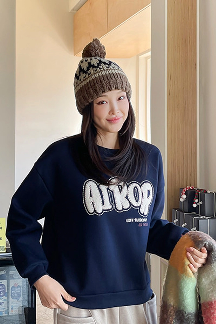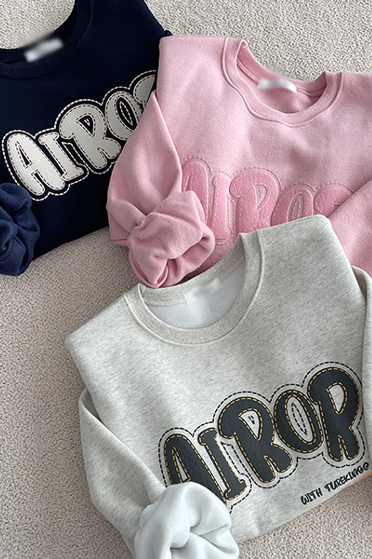 2512P22 立體英文刺繡徽章內刷毛棉上衣