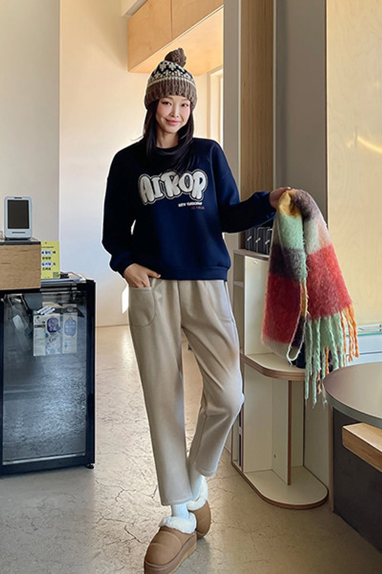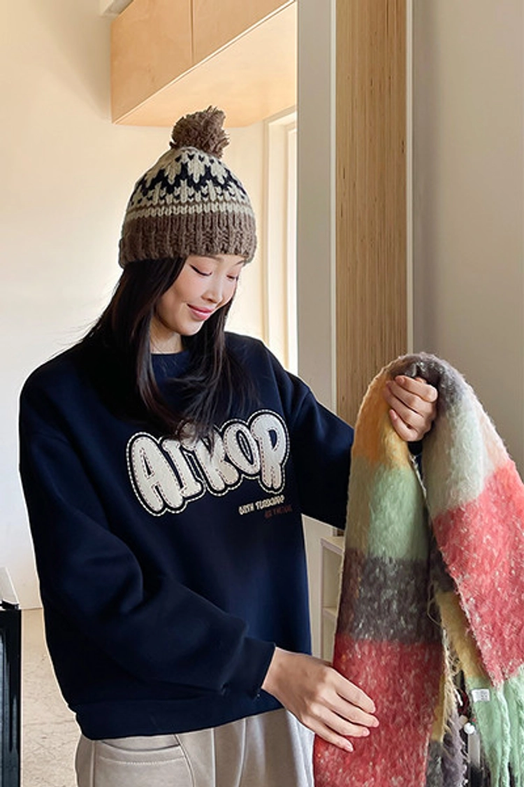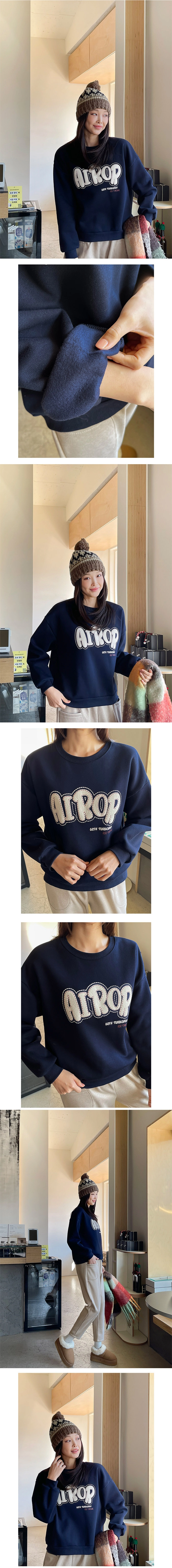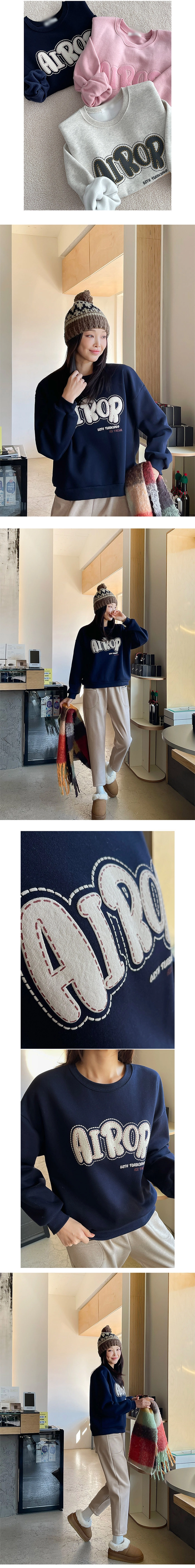 2512P22 立體英文刺繡徽章內刷毛棉上衣