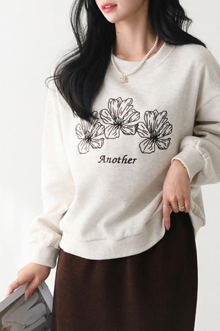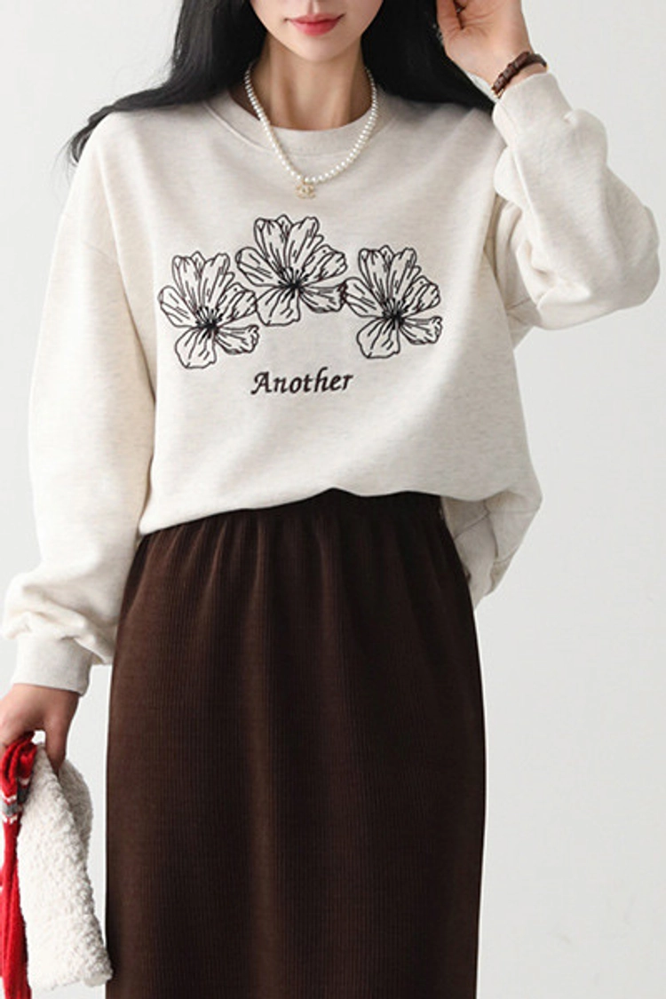 2512P24 甜美休閒小花刺繡內裡刷毛棉上衣