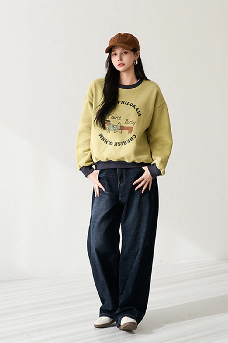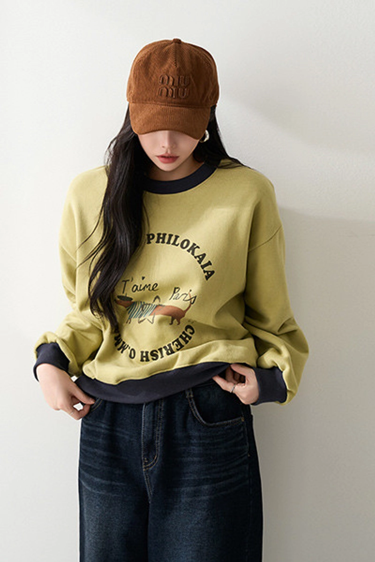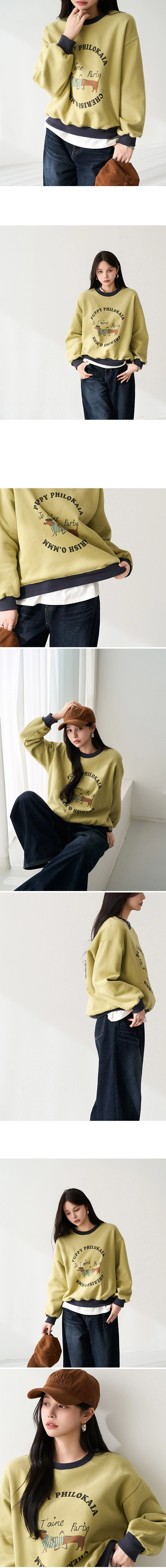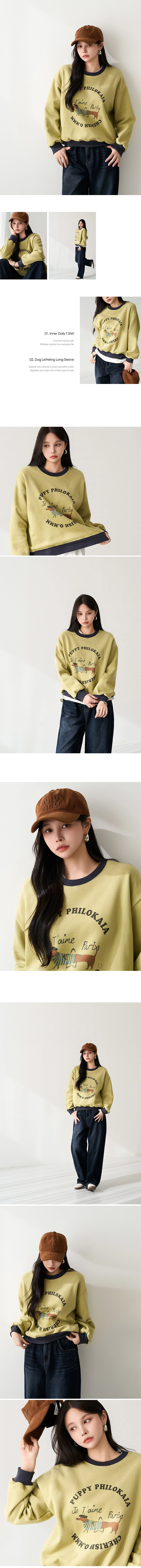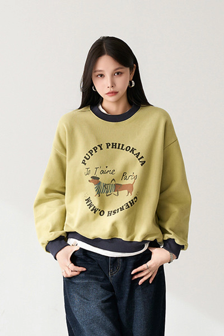 2512P27 可愛小狗撞色滾邊內刷毛棉質上衣