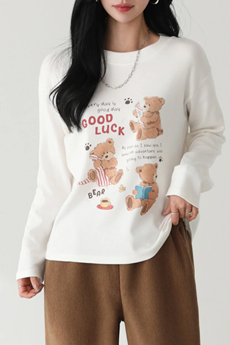 2512P28 可愛小熊塗鴉寬鬆舒適棉上衣