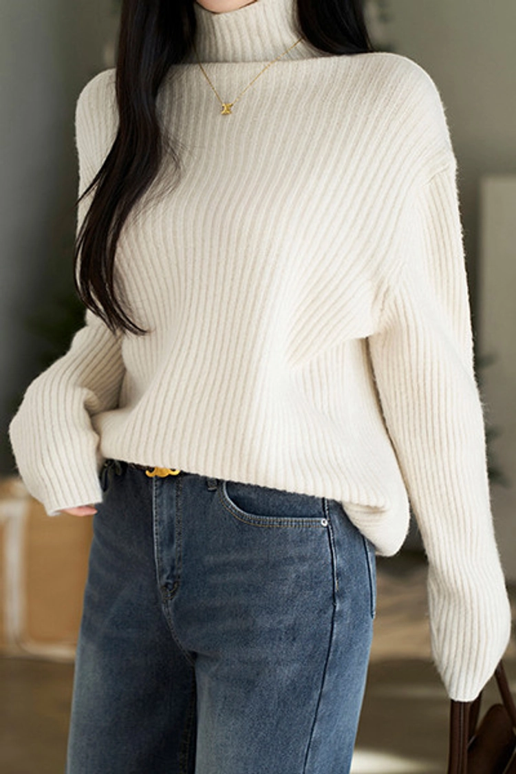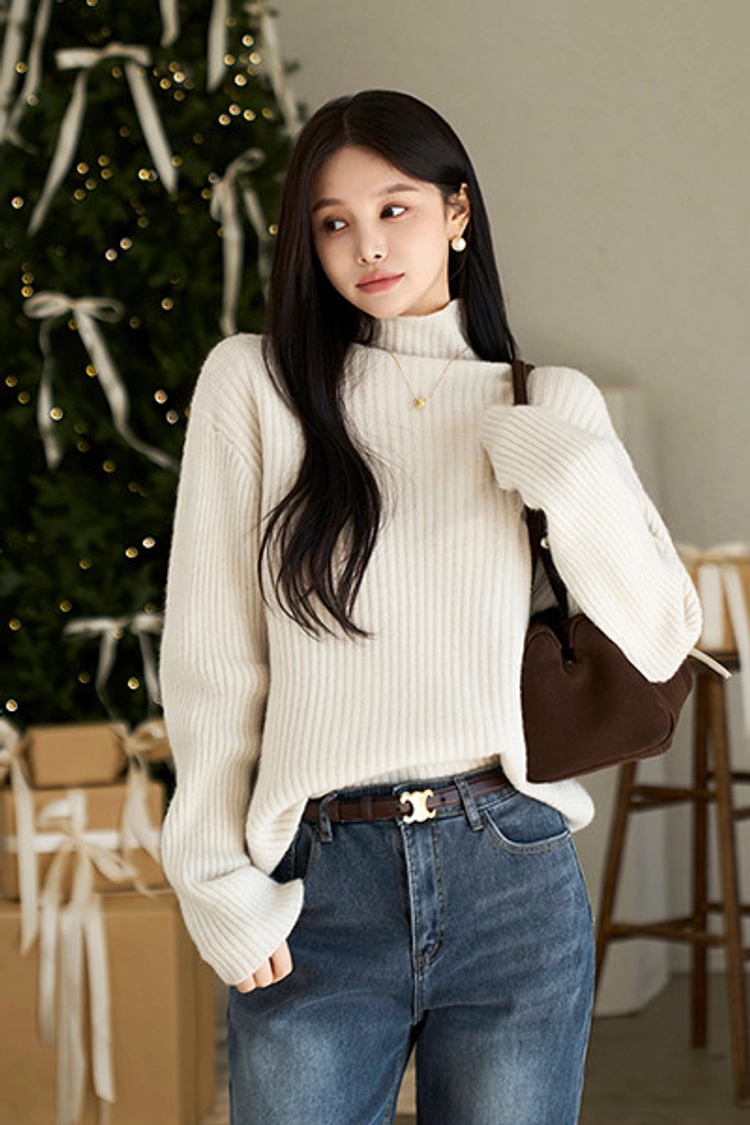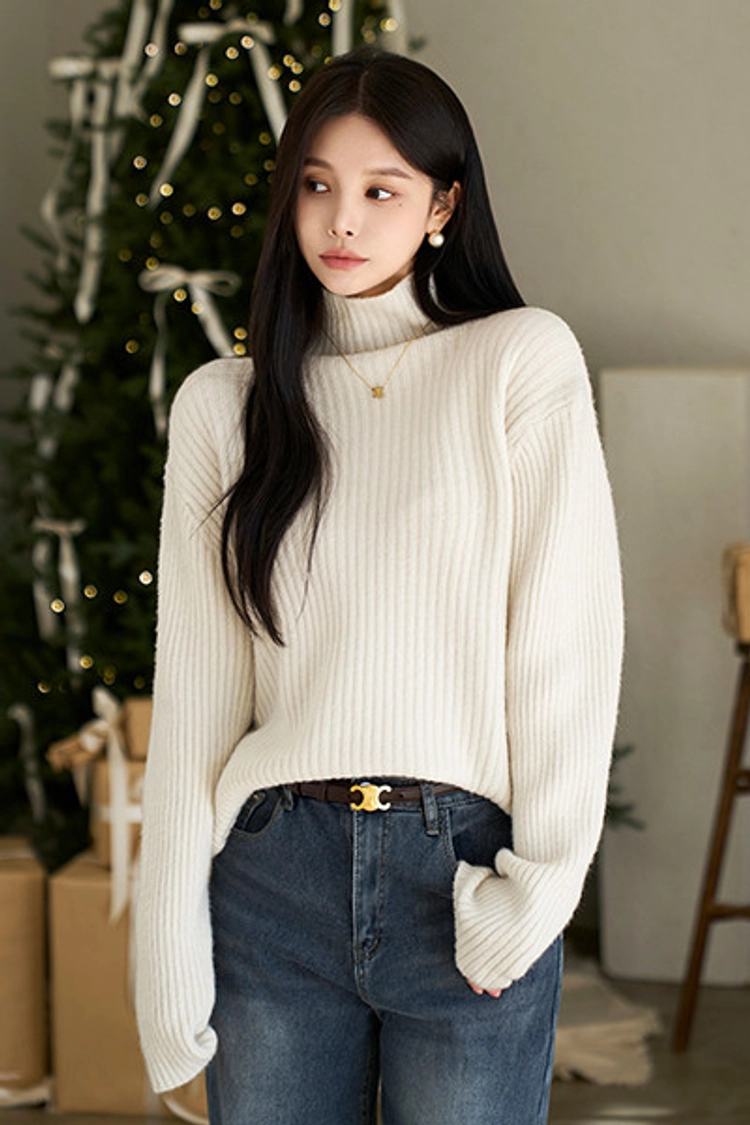 2512P33 坑條紋小立領保暖針織上衣