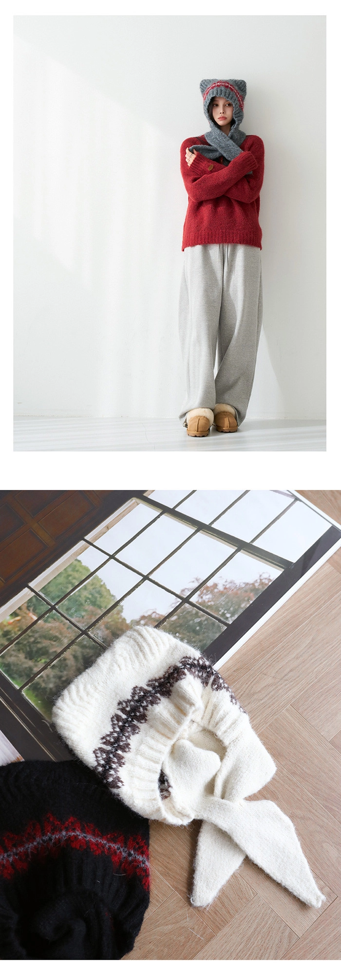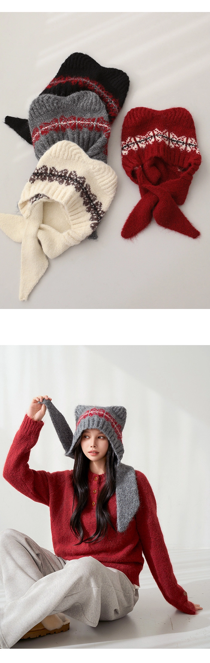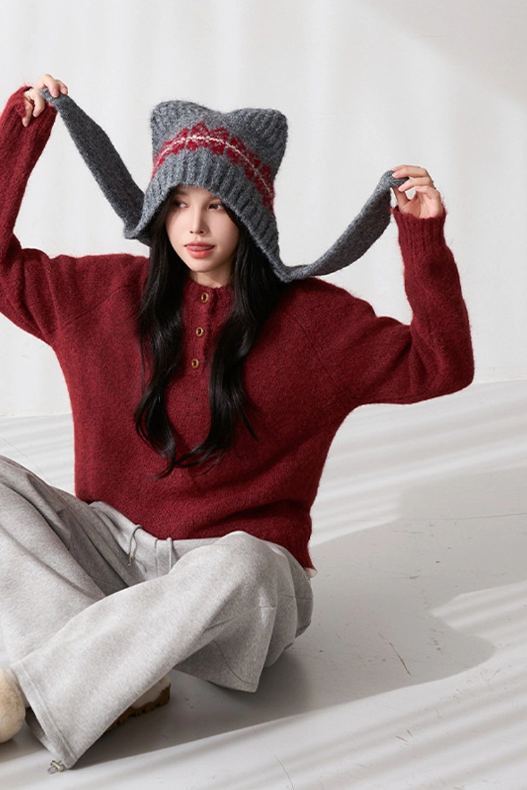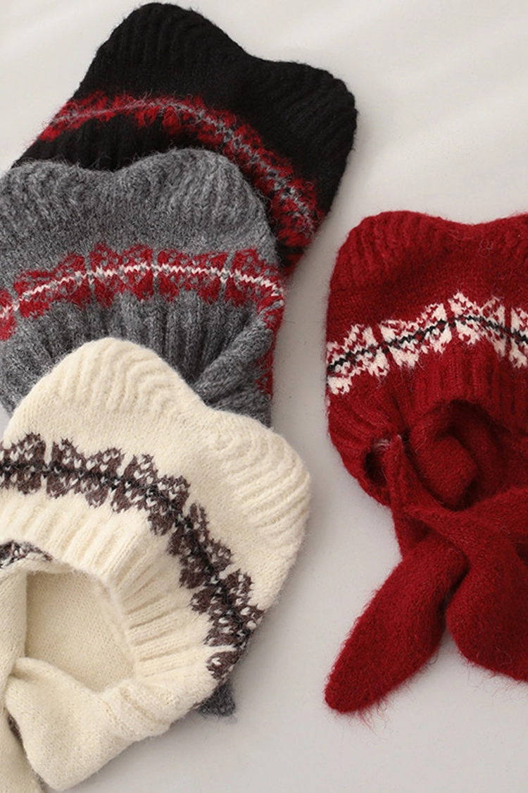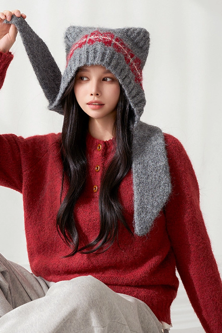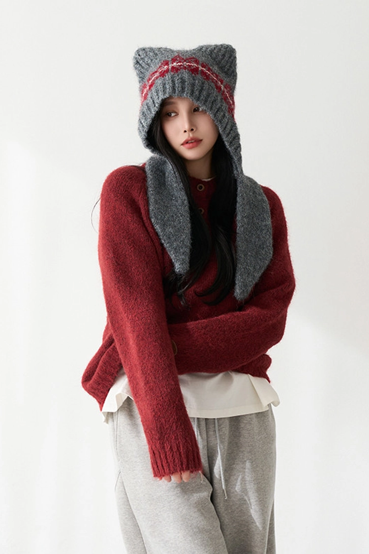 2512P39 貓耳造型柔軟羊毛針織巴拉克拉法帽