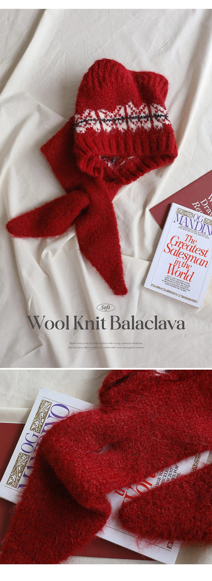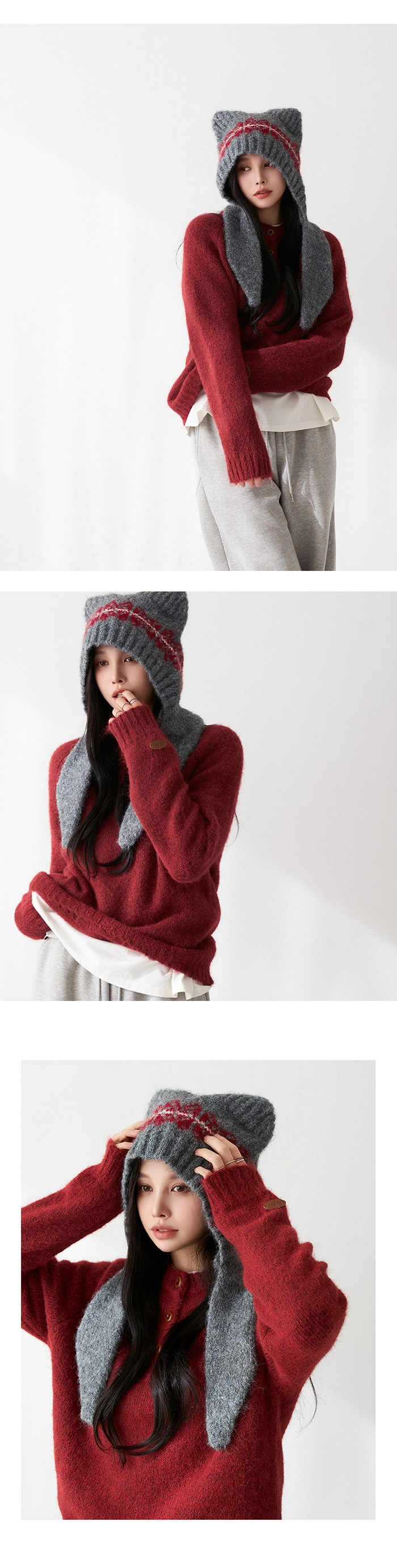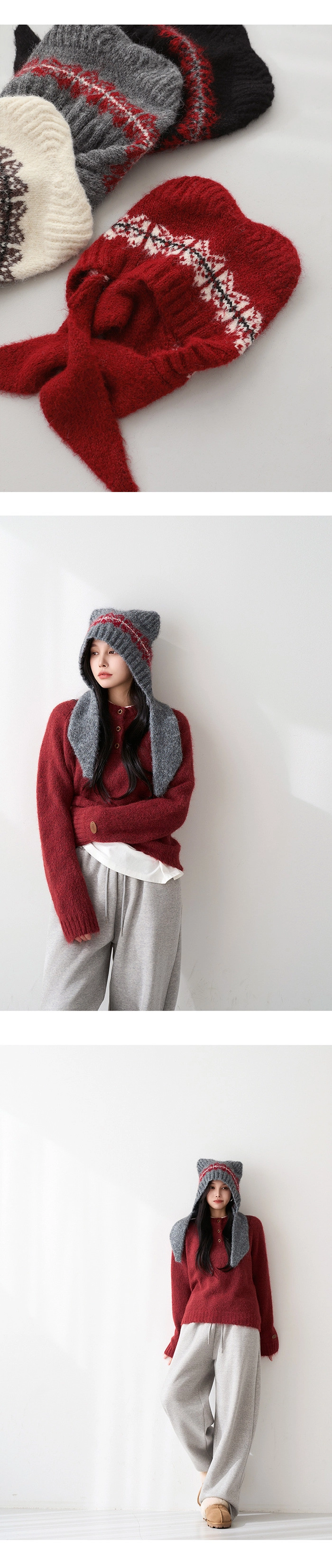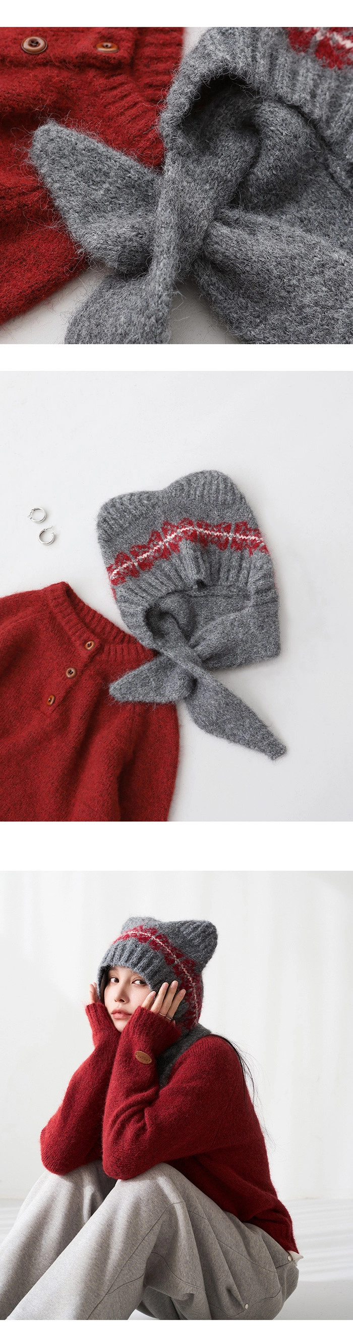 2512P39 貓耳造型柔軟羊毛針織巴拉克拉法帽