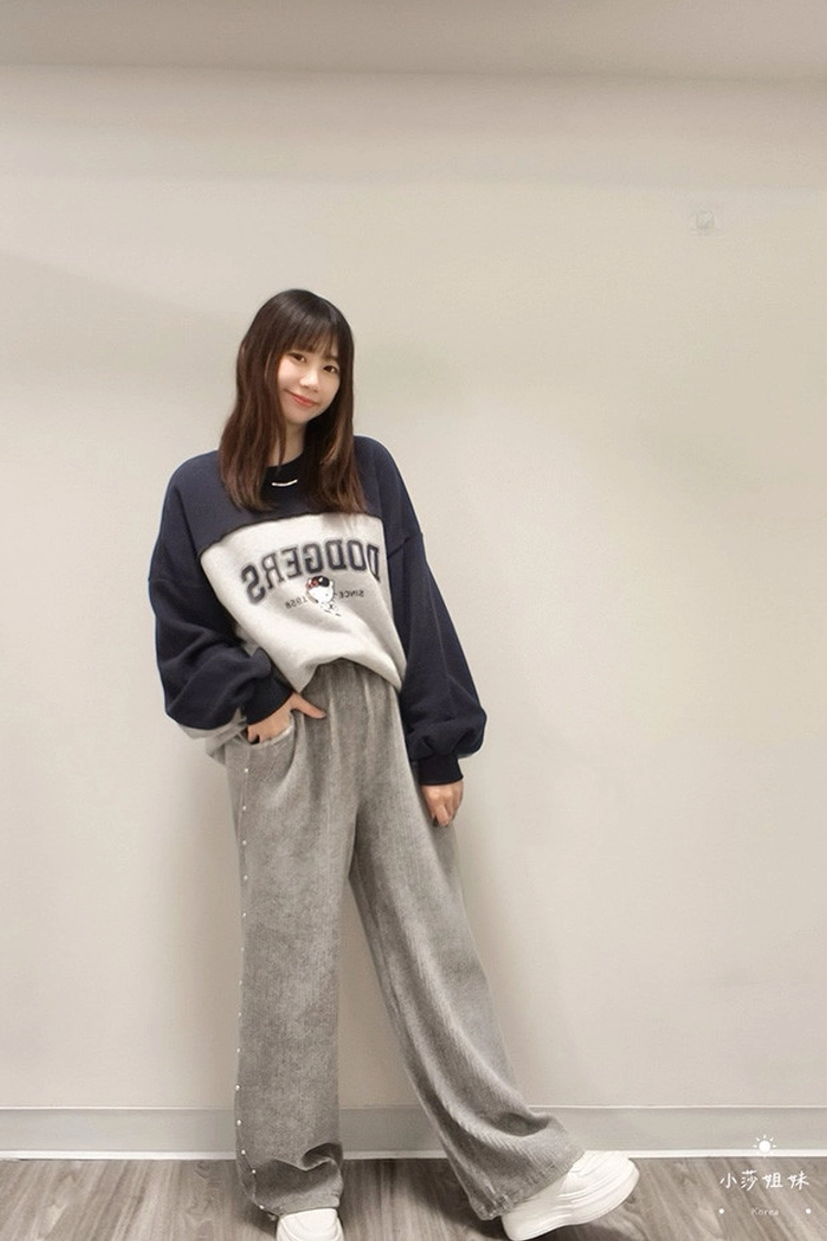 可以直接點影片看此款商品介紹適合S-XL號穿尺寸(cm):腰圍62 臀圍102 褲檔36 大腿圍60 褲管圍54 褲長103材質:燈芯絨產地:韓國洗滌說明:放洗衣袋機洗MODEL 莎妹:159cm/上身S號/下身S號MODEL 小莎:163cm/上身M號/下身M號